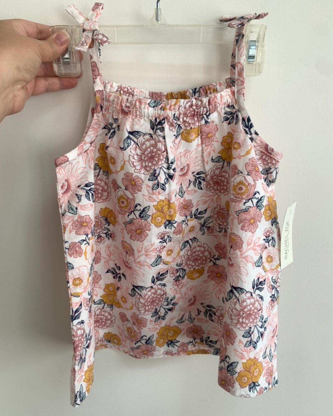 5T tank top by Rachel Zoe. My daughter only likes dresses so wouldn’t try on this gift she was given. Hoping it can make its way into someone else’s closet. It’s beautiful.