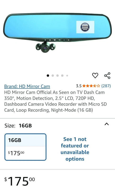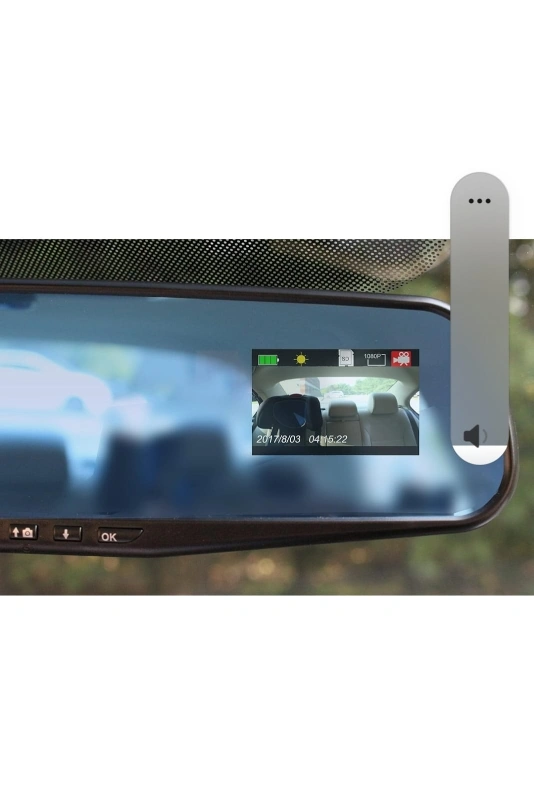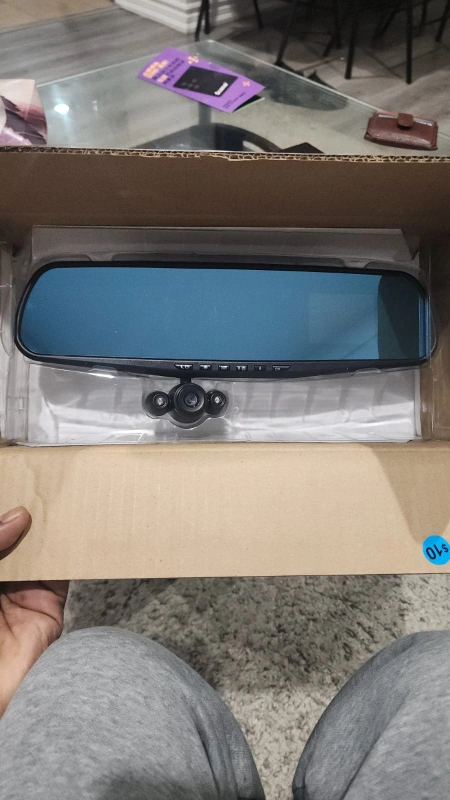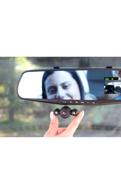 Includes a mirror with a built-in display and various accessories. The item comes with cables and a user manual. You can easily record your drives to have peace of mind.