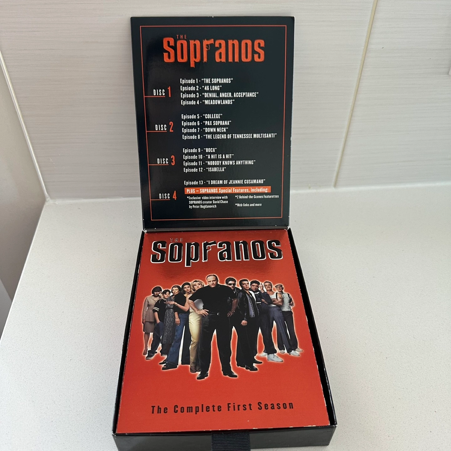 In great condition complete first season of “The Sopranos”. A bit of wear on the outside box, otherwise DVDs work great!