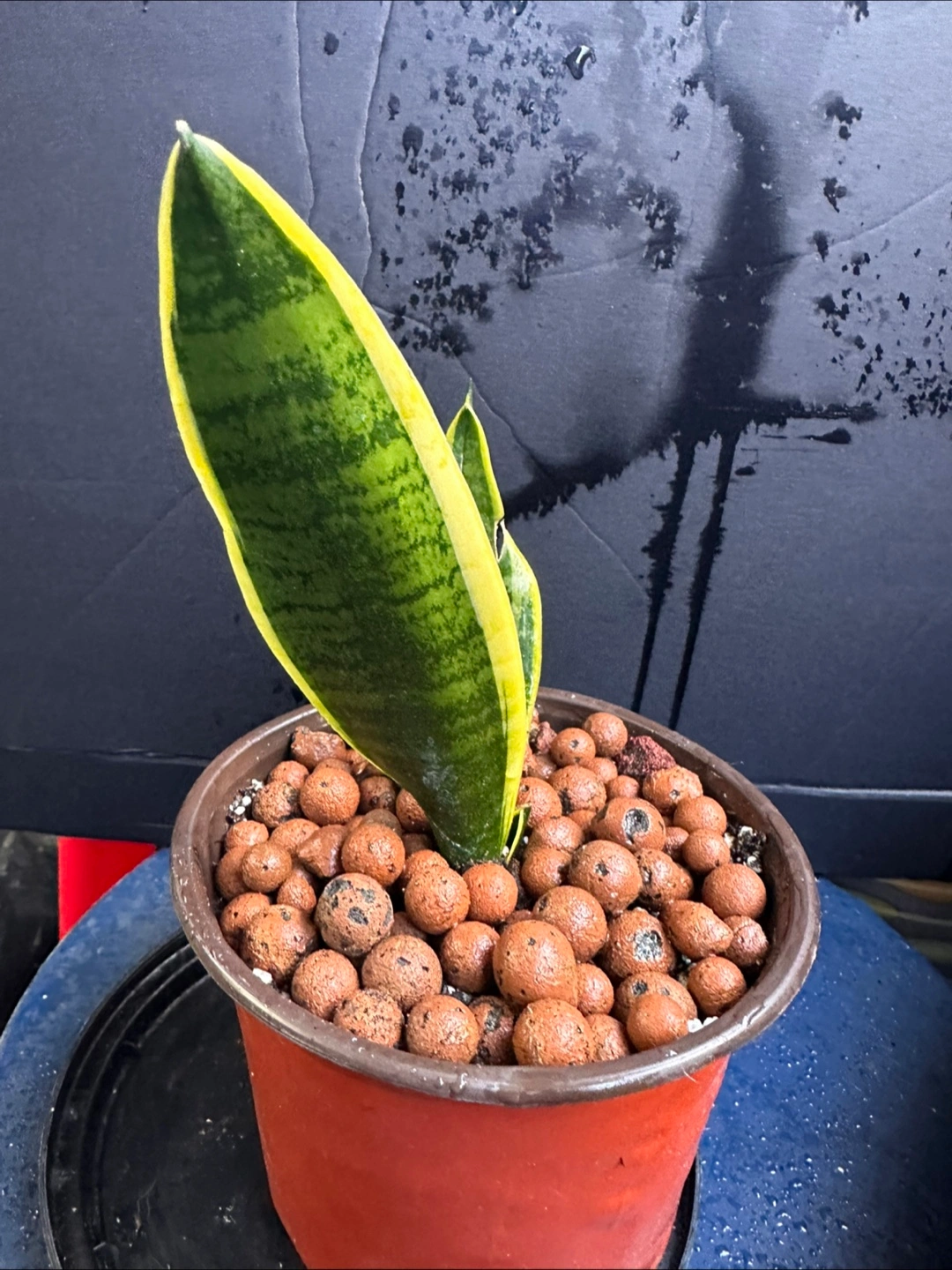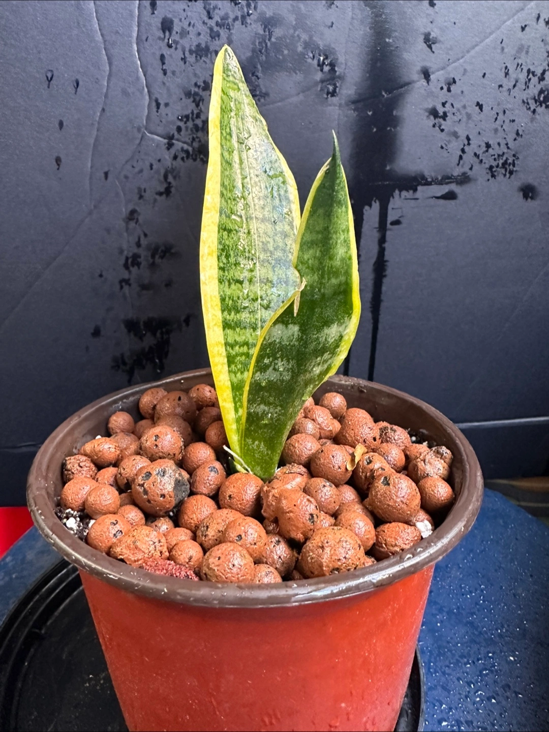 I am selling a beautiful snake plant in a small pot. The pot is a dark orange colour. The plant features long, green leaves with yellow edges. The soil is covered in small, brown balls. Adding this plant to your home can definitely help bring about feelings of peace.FREE aloe Vera cuttings and fertilizer if you're interested!
