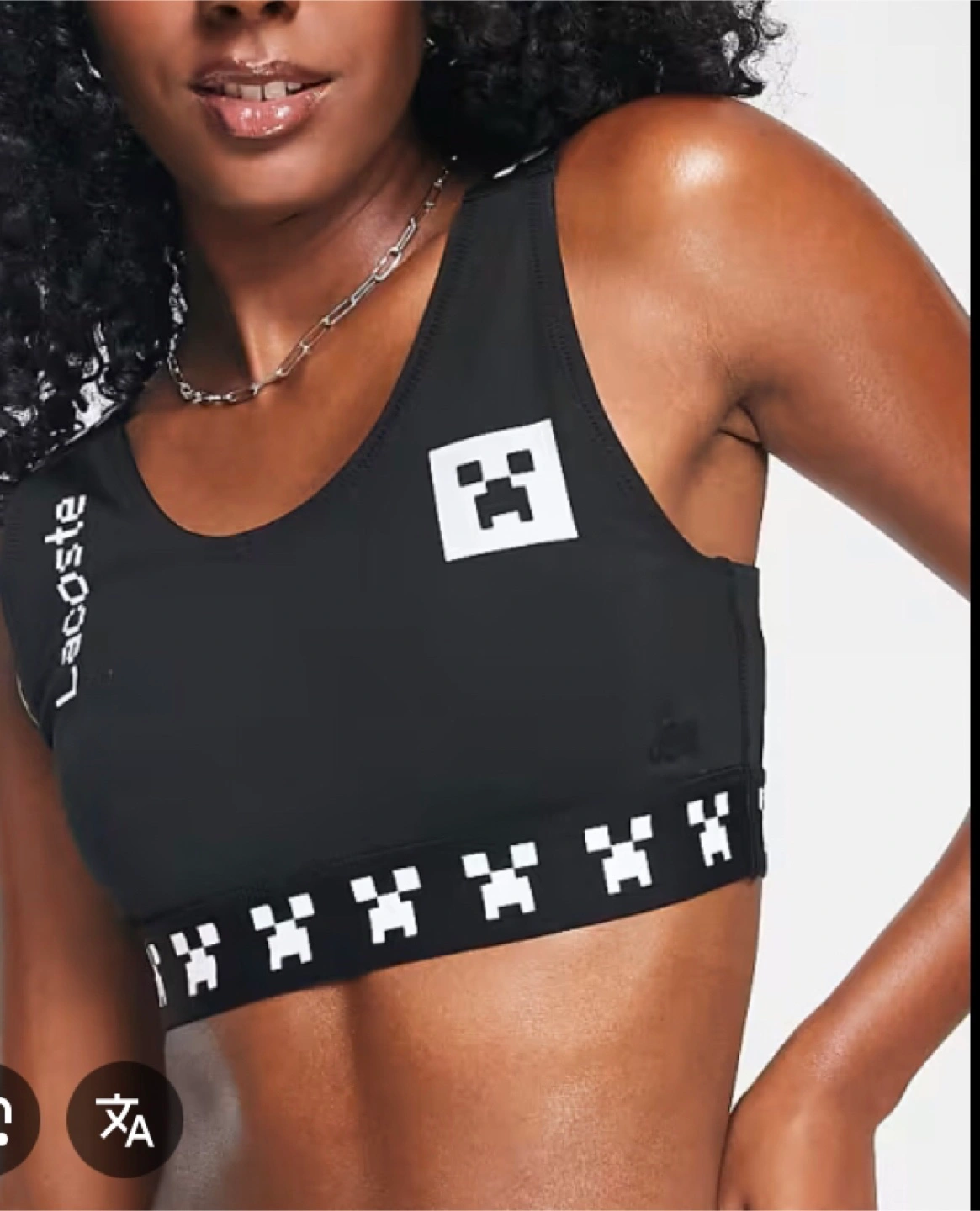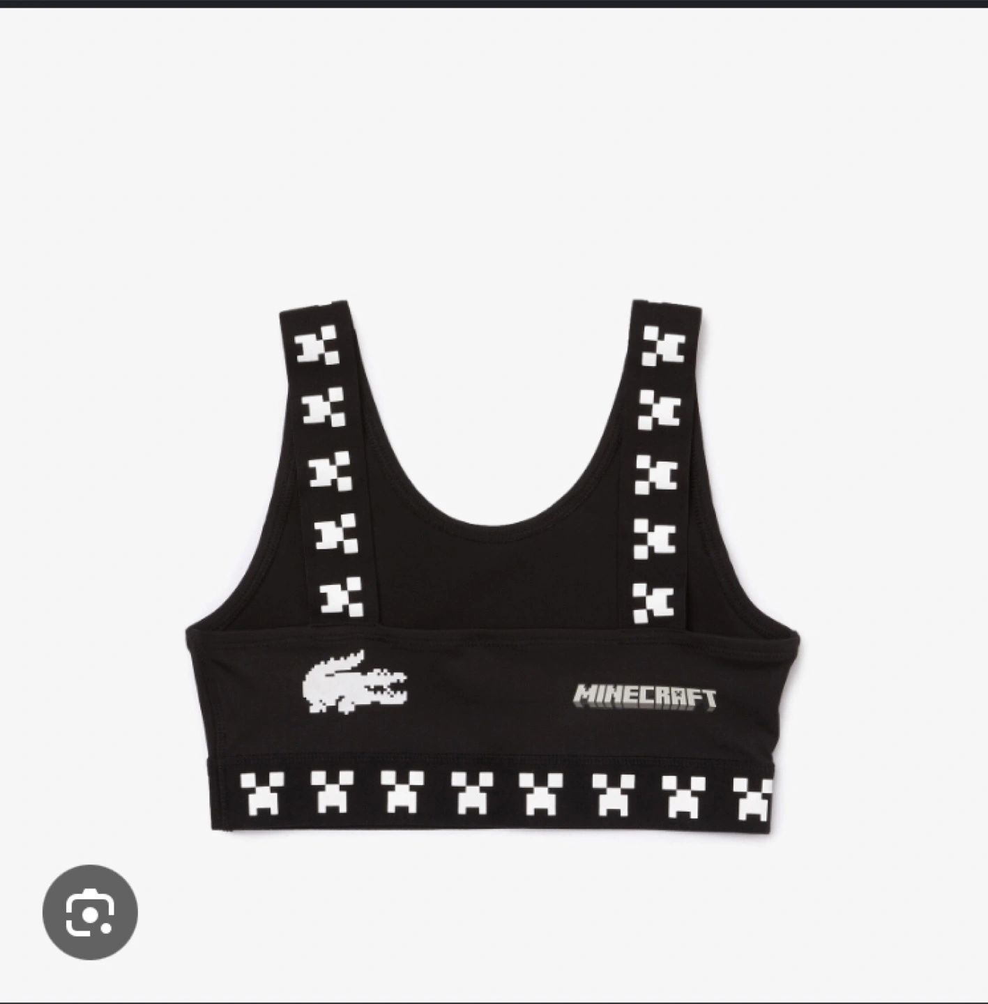 Super cool sports bra. Features white pixelated Minecraft patterns and iconic Lacoste logo. Retails at $110 +tax. Brand new with all tags attached.