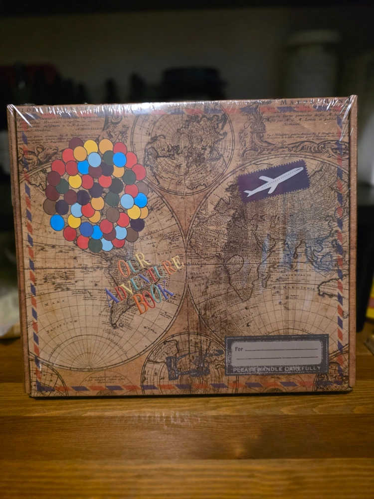 259Capture your precious memories with this beautiful retro-style scrapbook photo album. The album features a sturdy metal clasp and a convenient pocket for storing your photos and keepsakes. The cover is adorned with a whimsical "Our Adventure Book" design, perfect for showcasing your travel photos or any other special moments Pick up at Yonge and Steeles