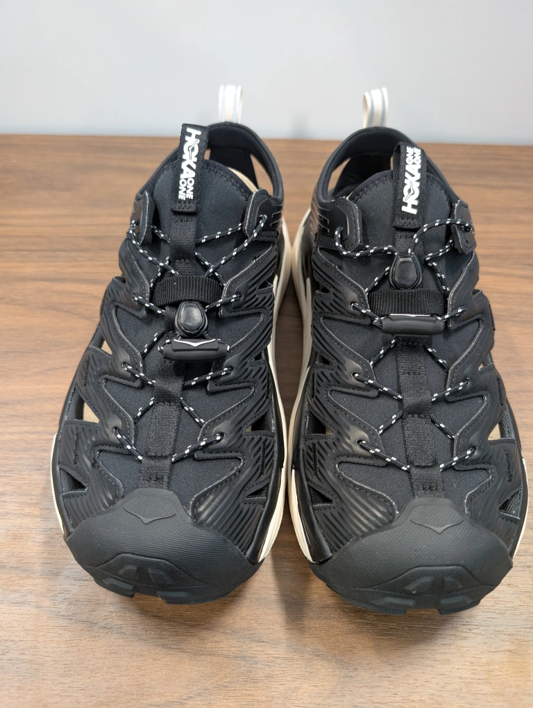 -White and black sole. -Brand new -All Gender -Synthetic and neoprene upper offers flexibility, comfort and breathability -Gusseted neoprene construction provides a secure lockdown and reduces friction when wet -Quick-lace system offers convenience, easy adjustability and lace storage -Rubberized EVA midsole offers a more cushioned and responsive ride -Rubberized toe cap provides protection against debris -Outsole features sticky rubber for grip in wet or dry conditions -4mm multidirectional lugs offer grip on uneven surfaces -Broad lug pattern with grooving offers grip when wet Bought online. Ended up buying a different pair. Regular price $150 https://www.hoka.com/en/ca/all-gender-footwear/hopara/1123112.html