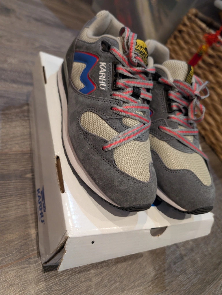 BNIB Grey and beige sneakers. Women's size 8.5. Classic design with a modern twist, perfect for any casual occasion.