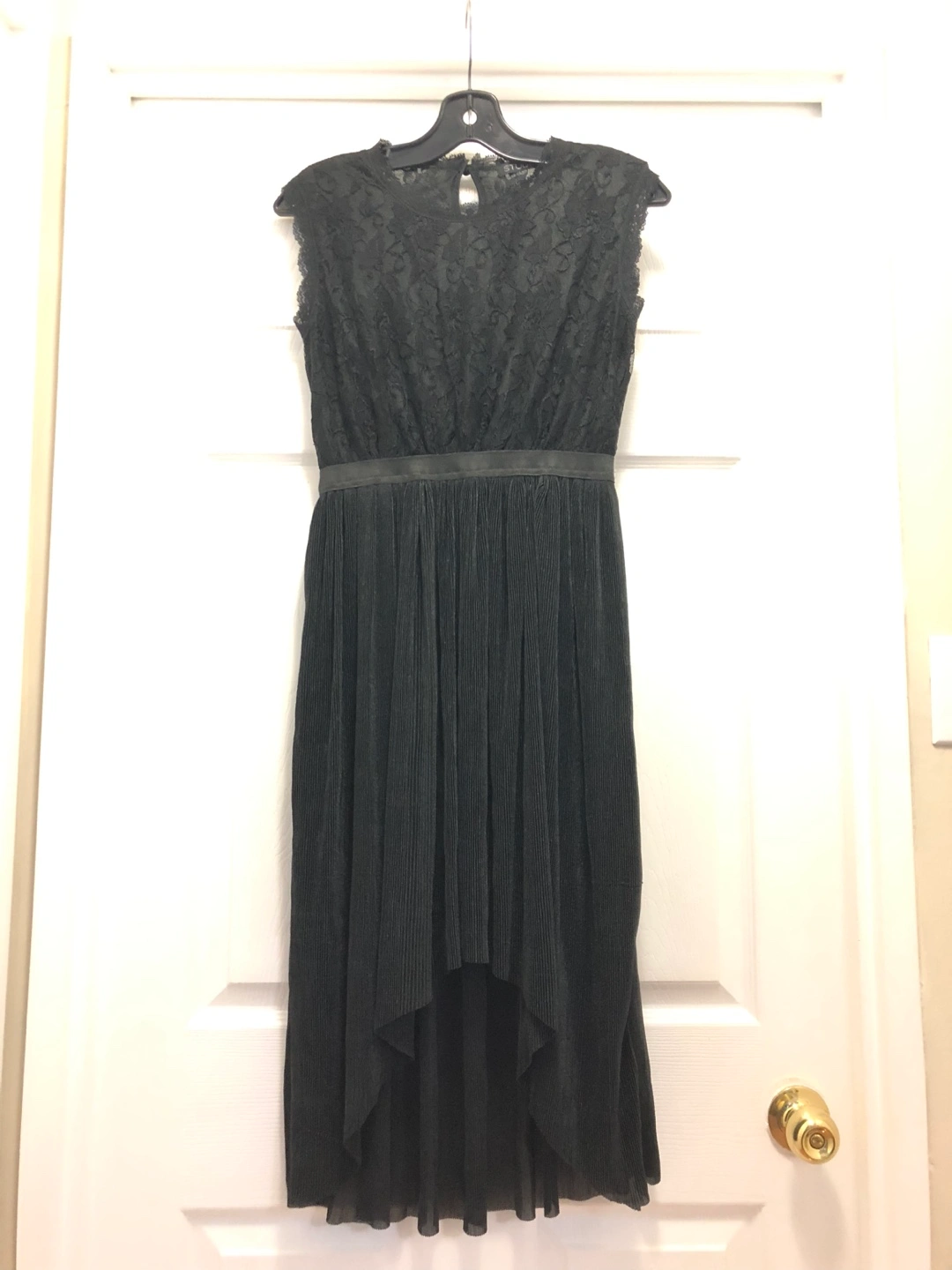 170Sleeveless dress. Lace bodice. Elastic waist. Pleated mullet skirt. Such a dress would be lovely for an evening out, so go ahead and treat yourself.