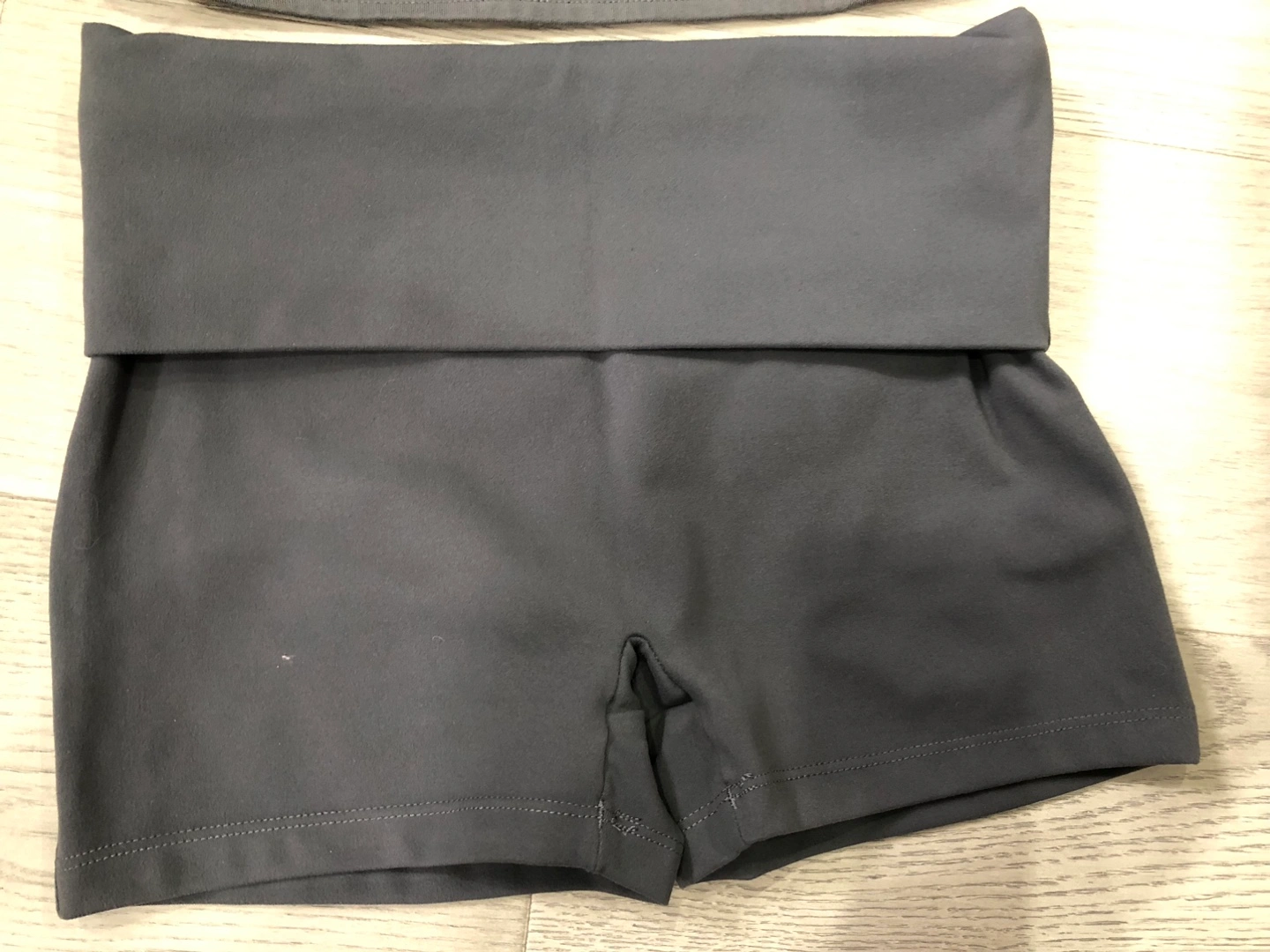 Soft, grey shorts. Features a fold-over waistband. These shorts would be perfect for a relaxing day at home.