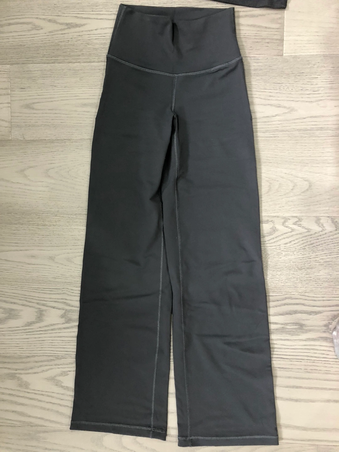 Gray workout pants. Featuring a high waist design. Comfortable fit. Relaxing in these pants after a good stretch can be lovely.