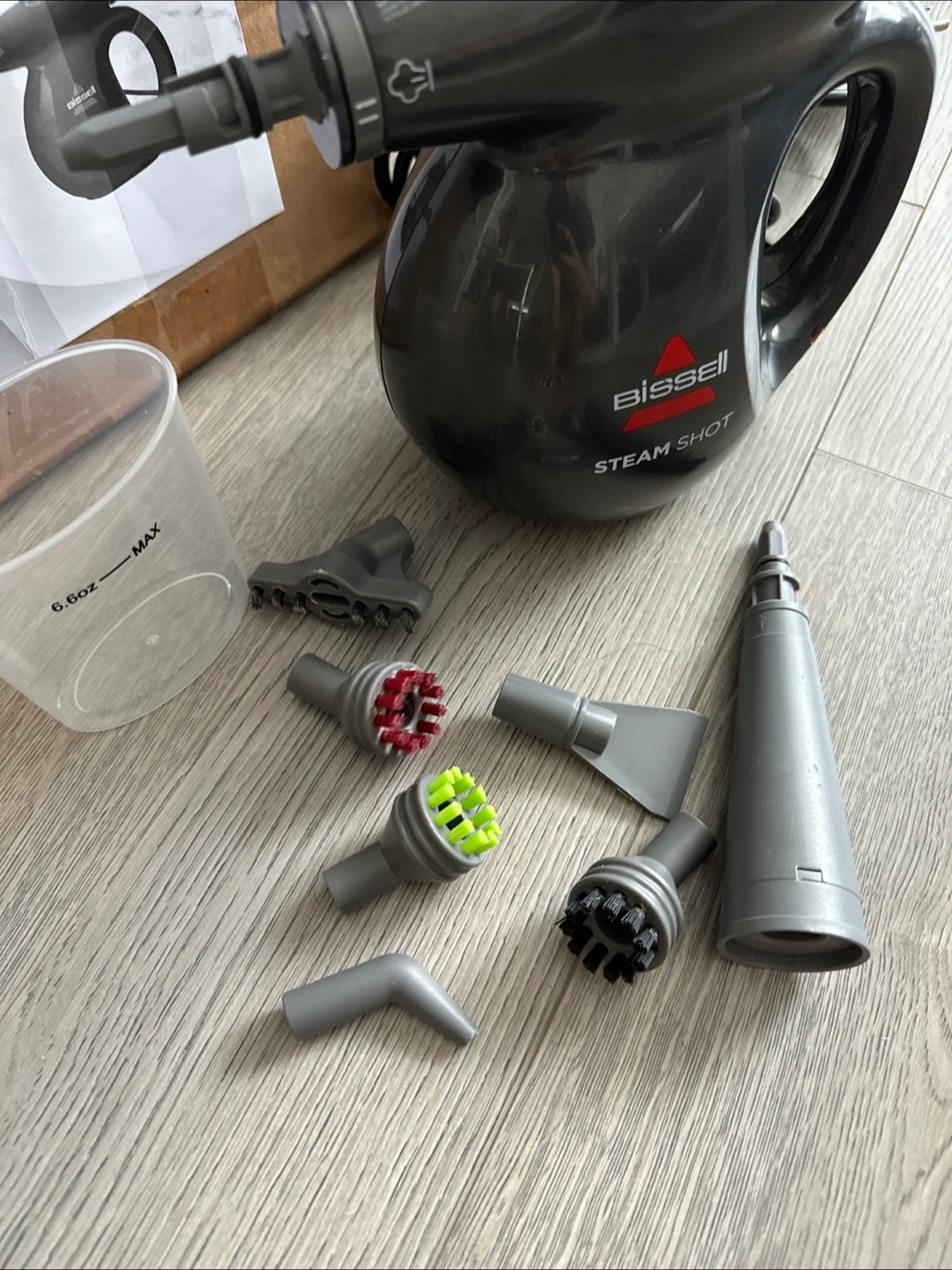Bissell Steam Shot Handheld Steam Cleaner comes with several attachments.