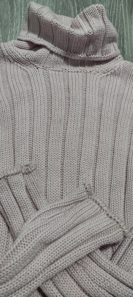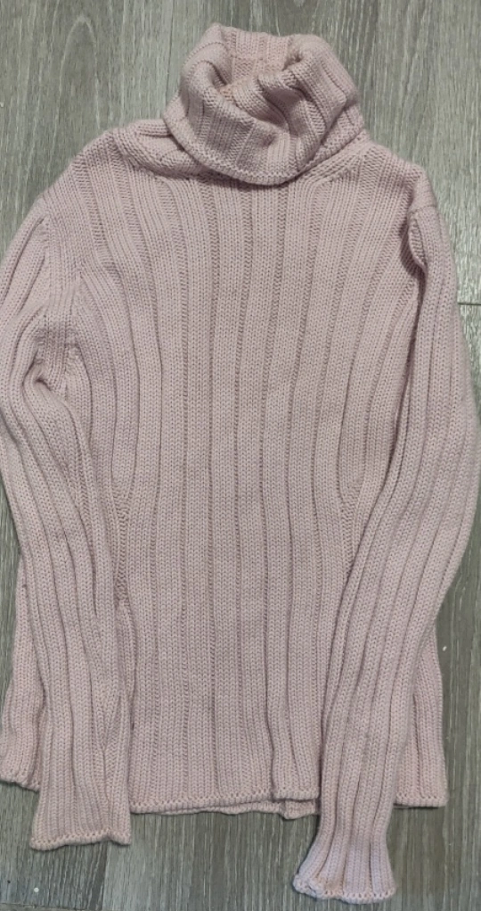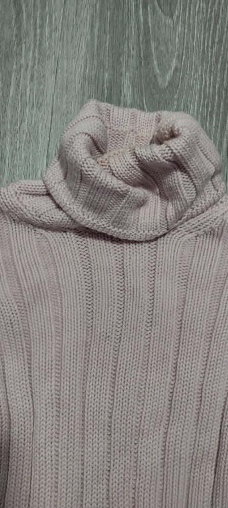 A beautiful serenity pink turtleneck sweater. Ribbed knitting pattern. The perfect piece for a cozy evening.