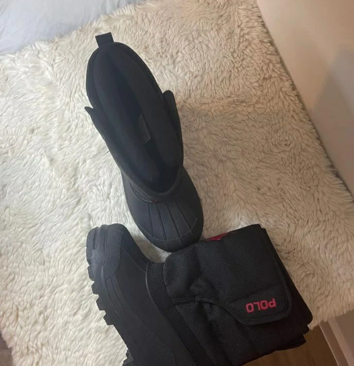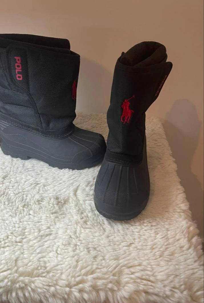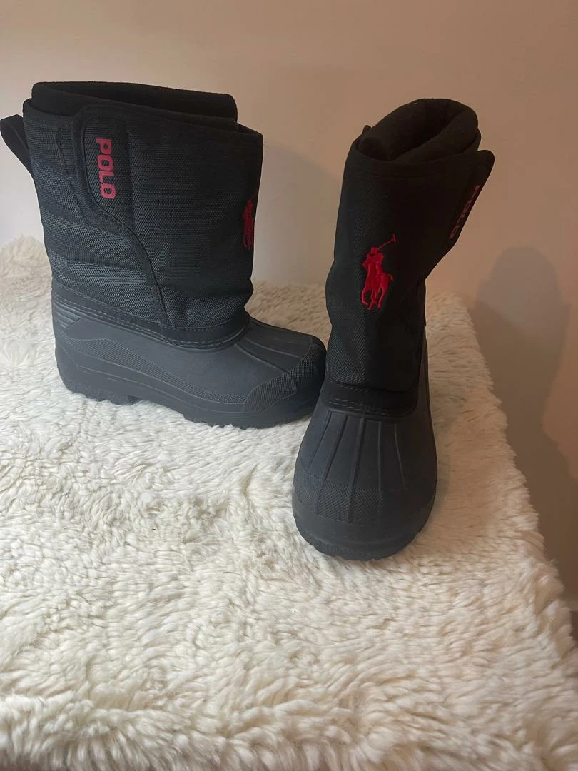 Black boots. Mid-calf length. Rubber sole. Polo logo on the side. Your Kid will be ready for winter when they wear these boots.