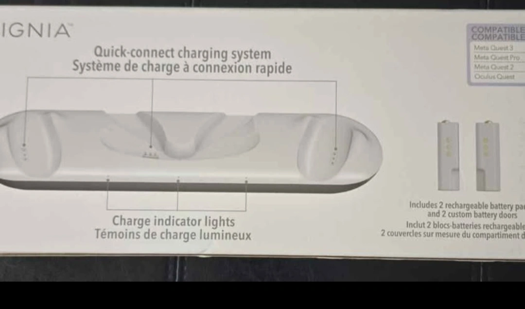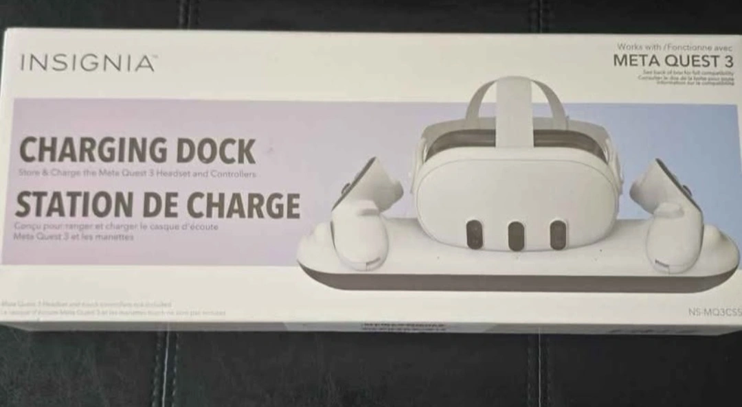 Charging dock for the Meta Quest 3 headset and controllers. Quick-connect charging system and charge indicator lights are featured. Great for neatly storing and charging your VR gear, ready for your next session.$55 or best offer cash pickup only