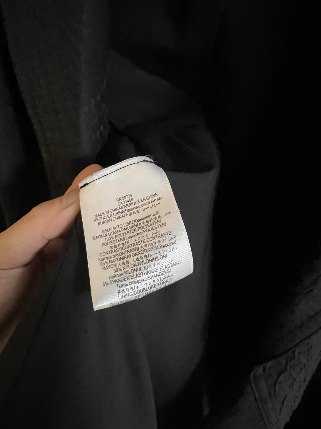 65% Rayon, 30% Nylon, 5% Spandex