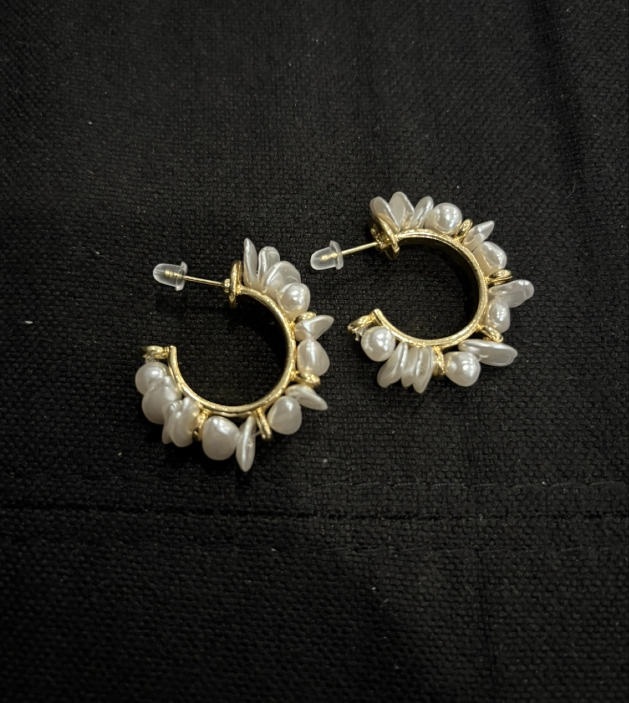 Beautiful hoop earrings. Adorned with pearls. Perfect for any occasion. You could wear these to help promote a sense of calm and self-assuredness.