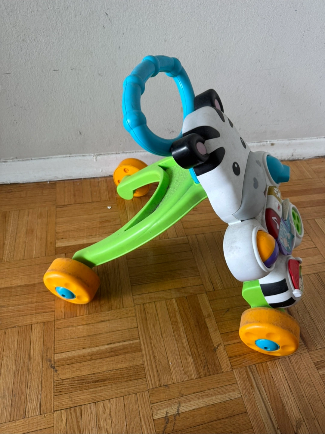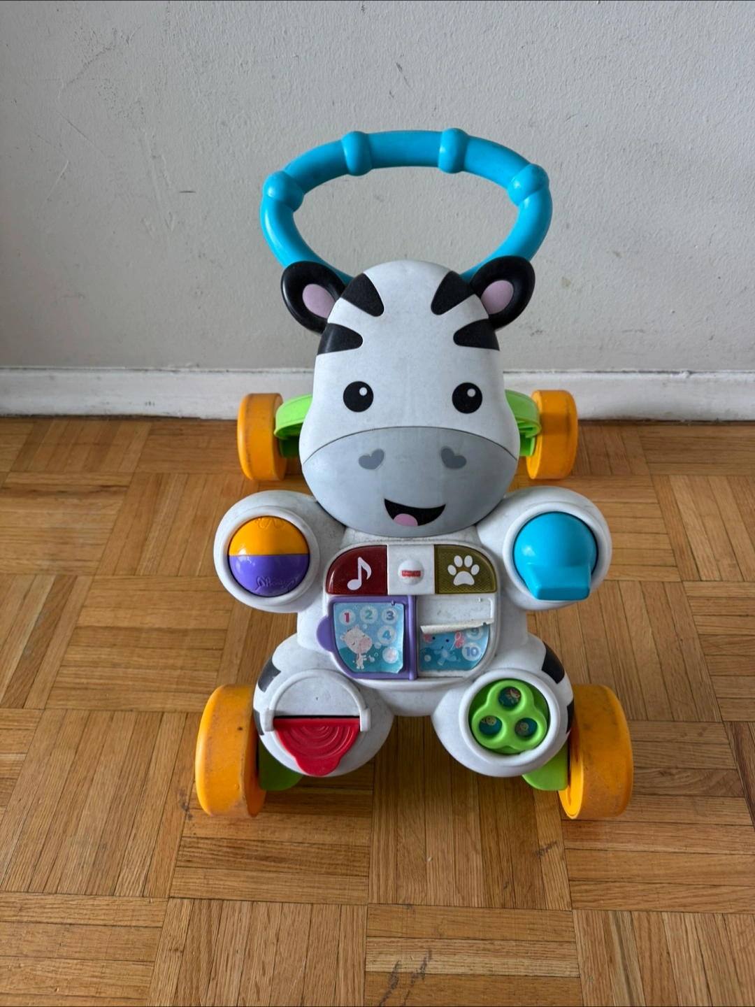 A fun and engaging toy. It has a zebra design. Equipped with a handle and wheels for mobility. Offers interactive play features. This walker can bring a sense of comfort and joy to your child.