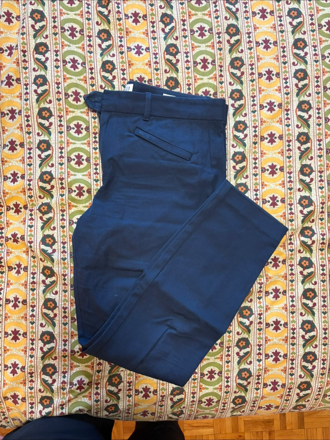 Dark navy blue pants. Features a button and zipper closure. Made with a regular fit and a skinny ankle cut. These pants are perfect for dressing up or down with your favourite top to achieve a great look.