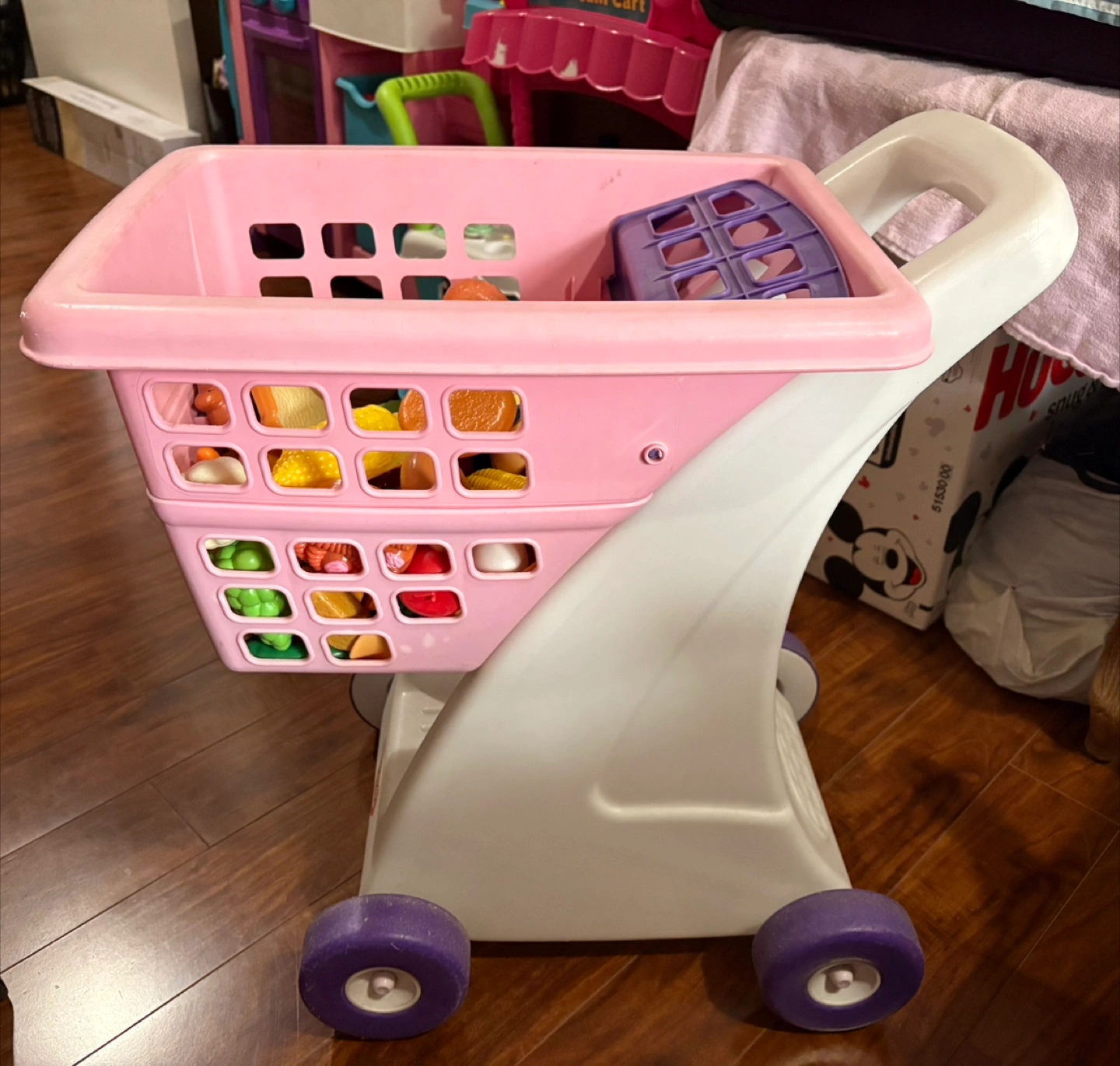 Pink Shopping Cart Toy with Food