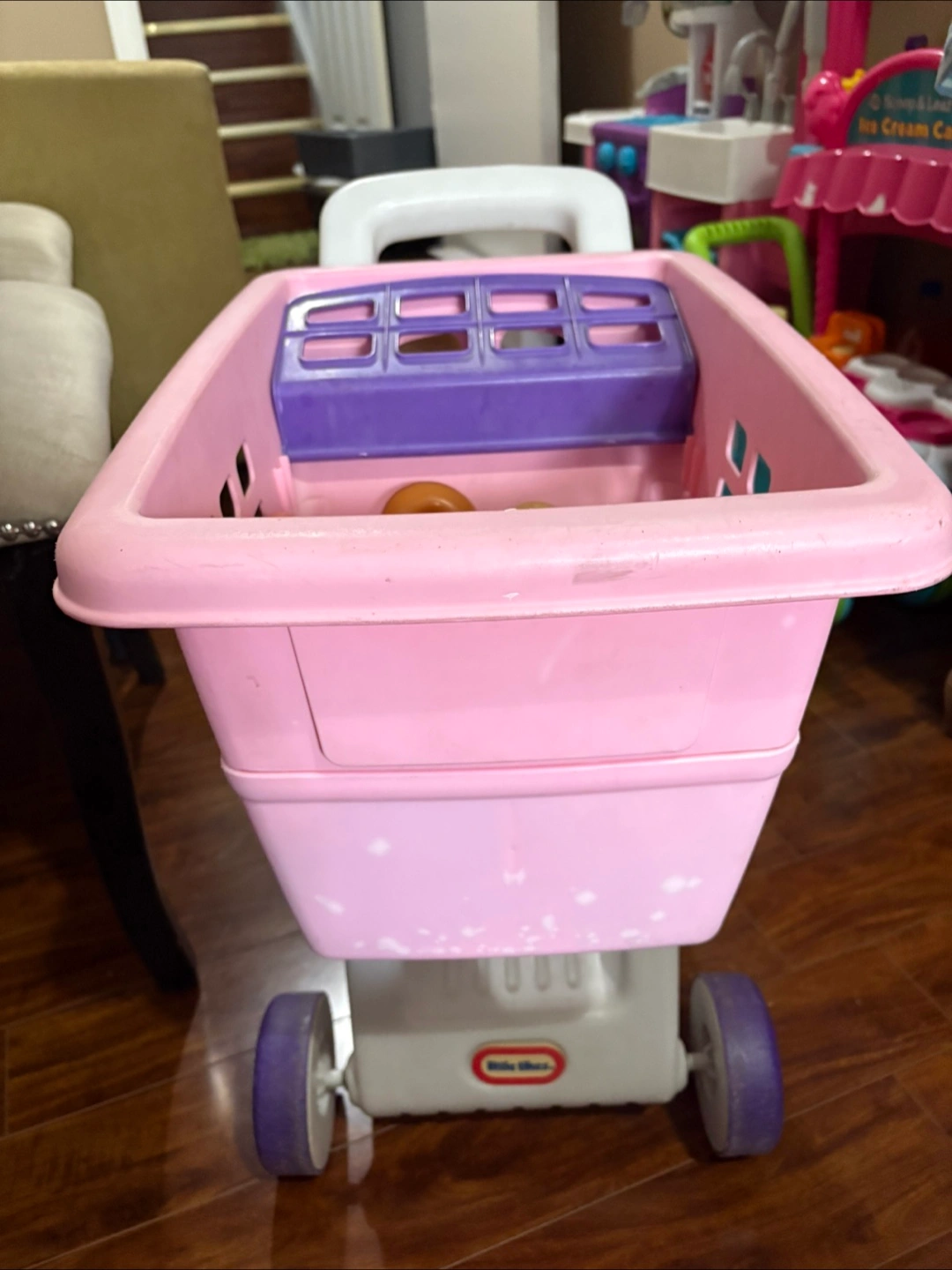 This Little Tikes shopping cart, complete with play food, is perfect for your little shopper. Let your child's imagination run wild as they navigate the 'store' with this charming pink cart. Ideal for hours of pretend play!