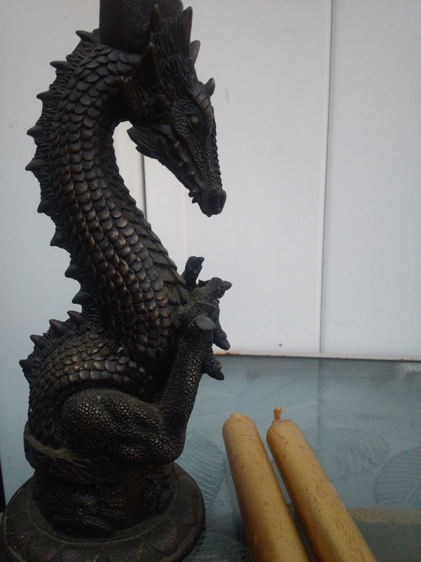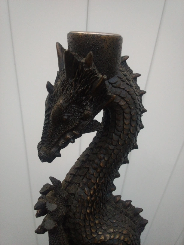The dragon-shaped candle holder has a detailed design, with a dark color. A great addition to your room, setting the mood to relax and unwind.