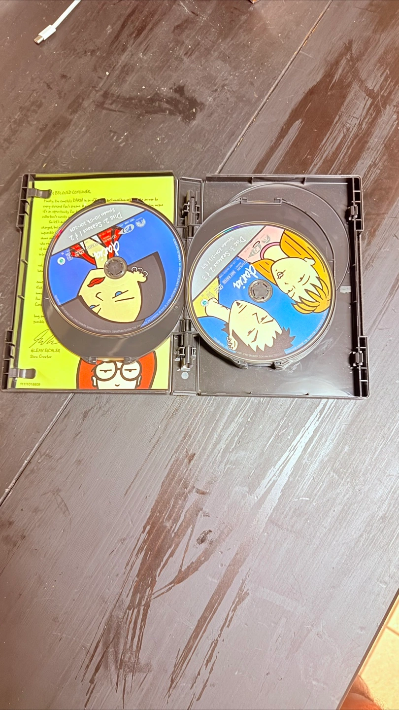 The Daria DVD set. Features a colorful cover. The inside reveals two discs. Perfect for a cozy night in.