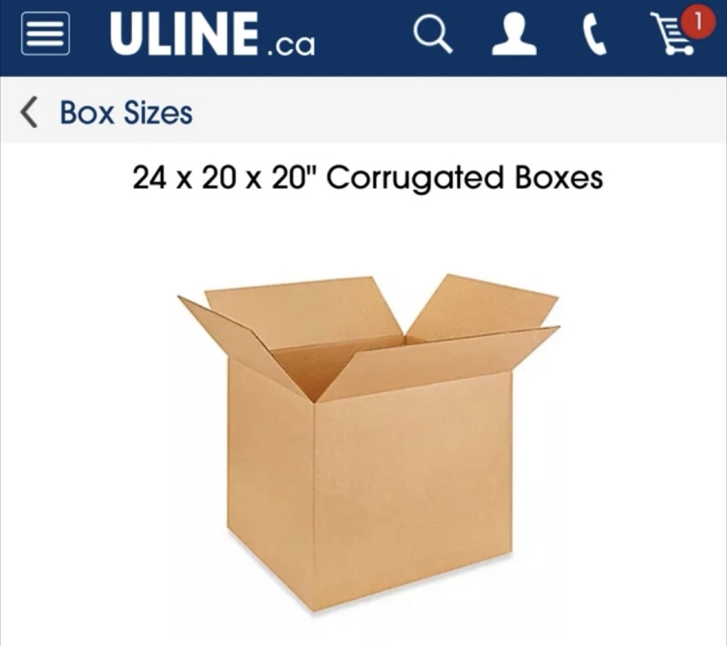 1 / 41 / 4Buy & SellULINE-New Large Cardboard Boxes Moving/Shipping BoxULINE-New Large Cardboard Boxes Moving/Shipping Box$20New Large Moving cardboard boxes. 6 Boxes left $20ConditionNewDimensions24x20x20WHERE TO MEETYonge/LawrenceView MapSELLERverifiedTeresaBedford Park873 reviews5 chats·4 favorites·171 viewsSEND CHAT TO SELLERHi Teresa! I’m interested in your listing.Hi Teresa! I’m interested in your listing.Get the Karrot app to chatSign In to chat