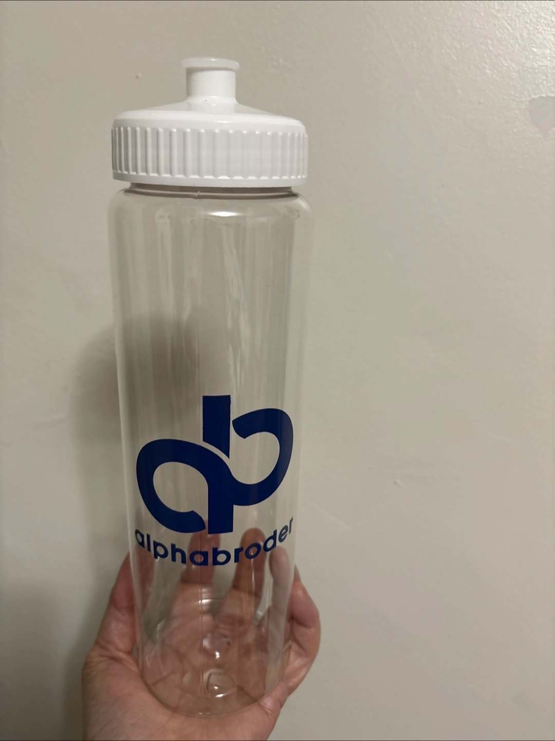 A clear water bottle. Comes with a white cap. Great for staying hydrated during a long day. Only available for pick up.