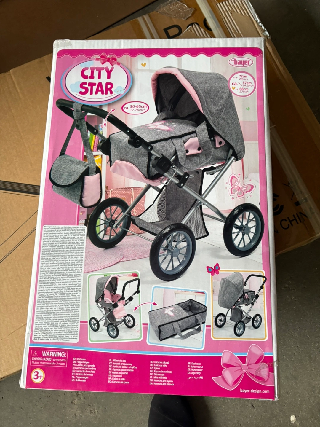 Bayer City Star Grey Pink Butterfly Pram Stroller