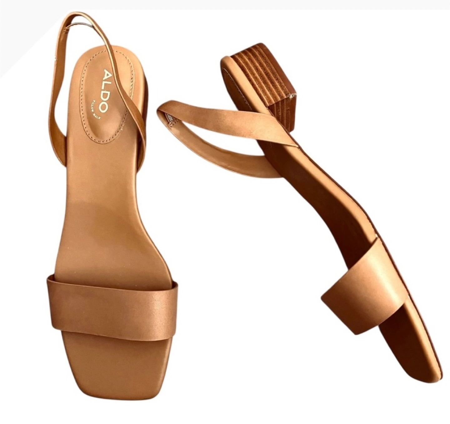 Keywords: ALDO sandals, slingback heels, block heel sandals, nude sandals, beige heels, minimalist sandals, women's sandals, dress sandals, casual sandals, summer sandals, low heel sandals, comfortable heels, size 8 sandals, ALDO