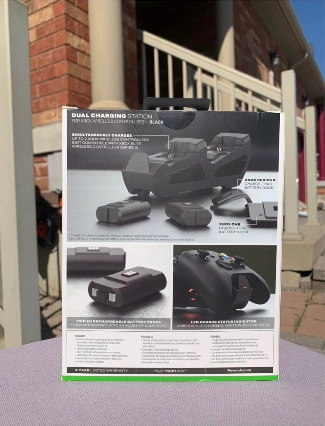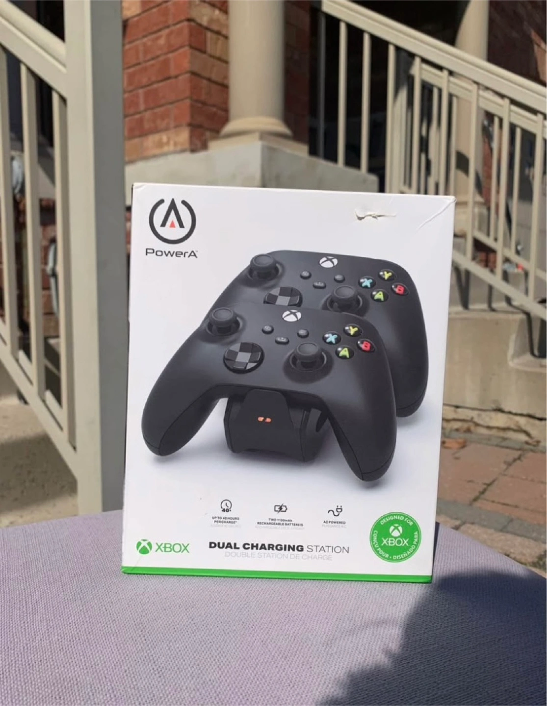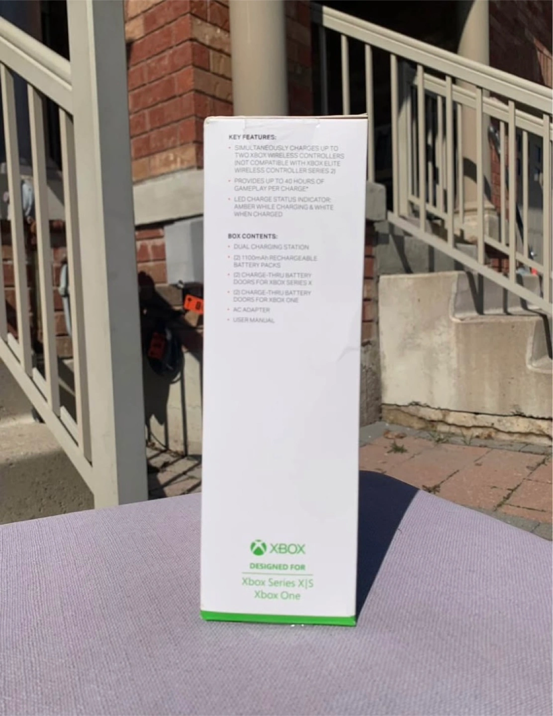 22Brand New Never Used X-Box Dual Charging Station Was purchased & never used because I needed a different type of Product. Includes: DUAL CHARGING STATION, (2) 1100mAh RECHARGEABLE BATTERY PACKS, (2) CHARGE-THRU BATTERY DOORS FOR XBOX SERIES X, (2) CHARGE-THRU BATTERY DOORS FOR XBOX ONE, AC ADAPTER, USER MANUAL Colour: Black