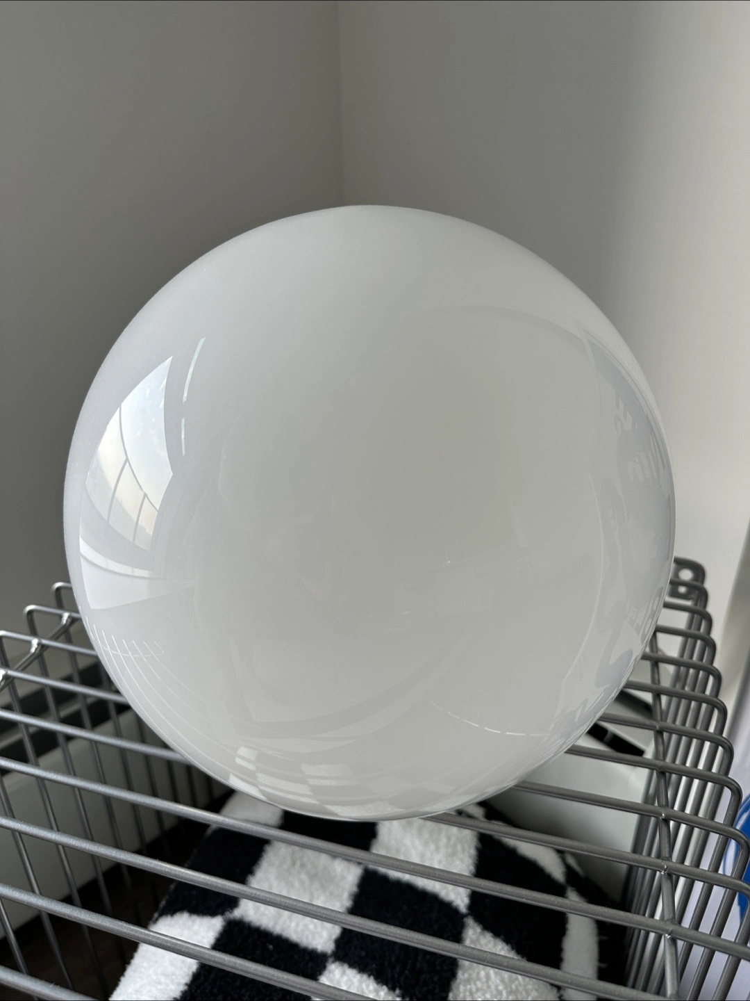 A large, white, spherical lamp globe or a decorative piece. Perfect for adding soft lighting to your space, creating a serene atmosphere. Written with AI.