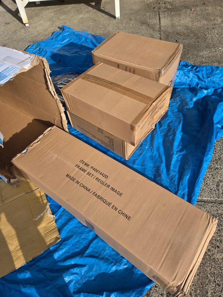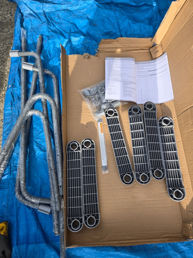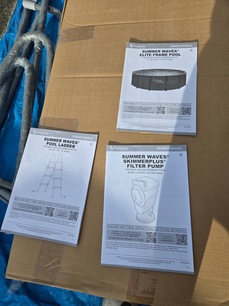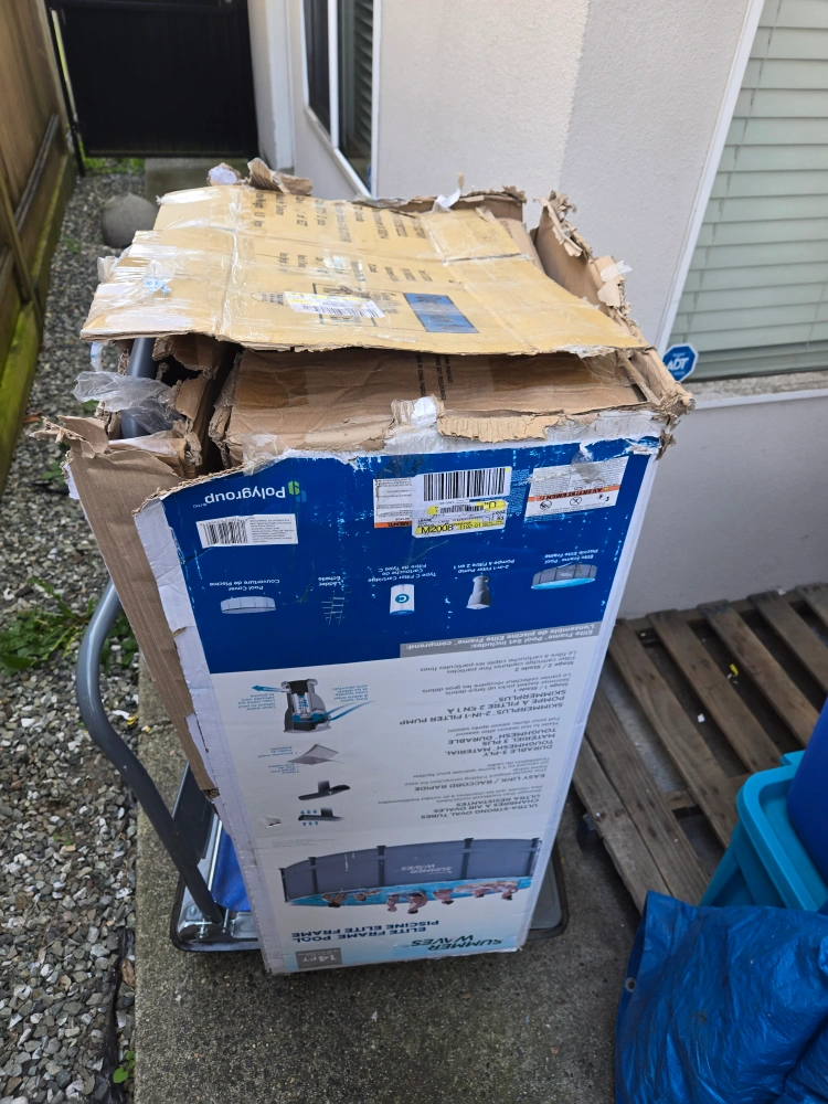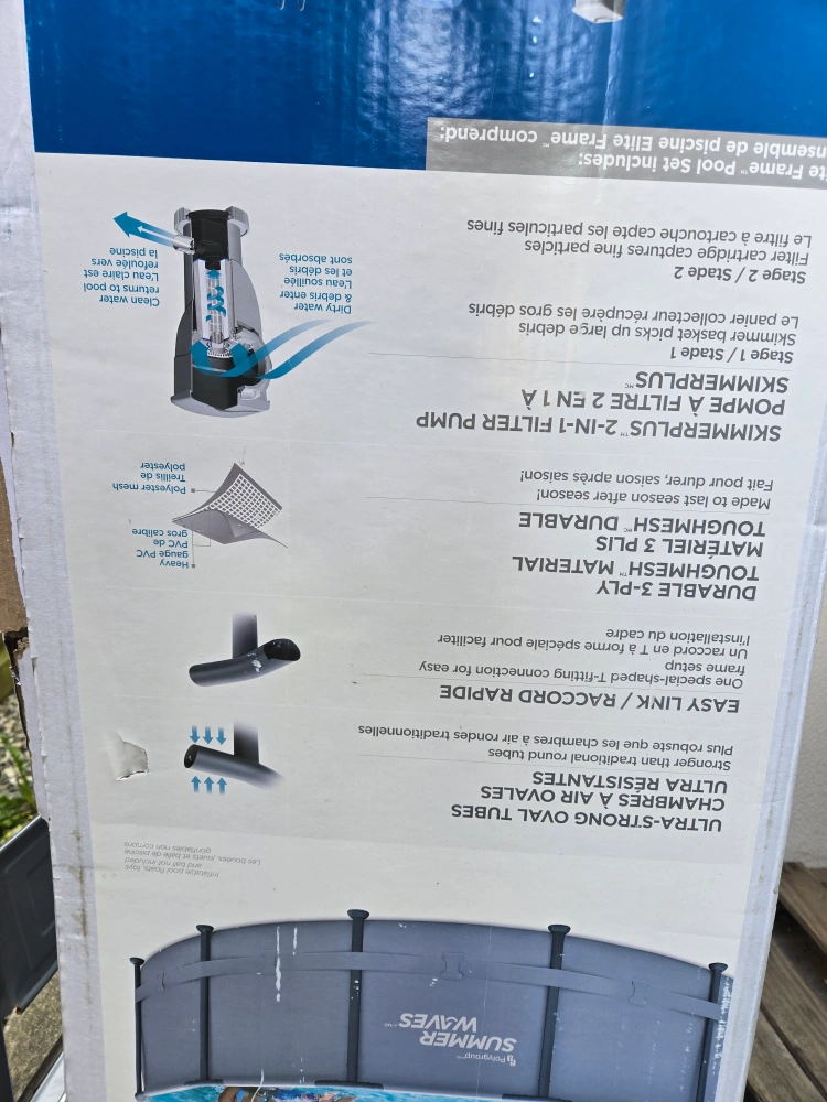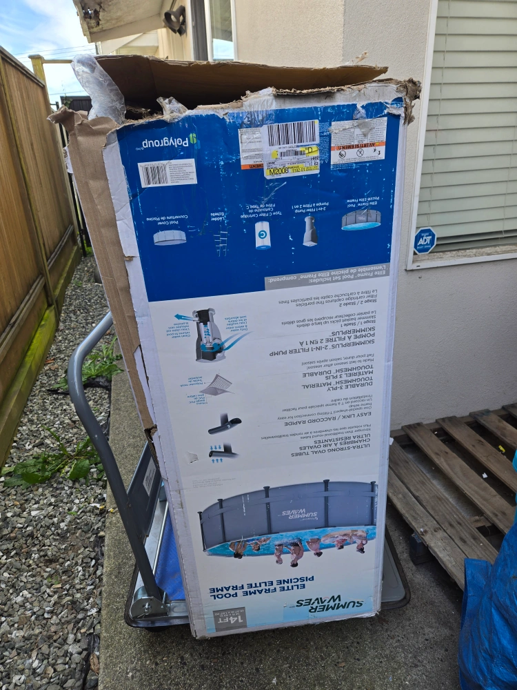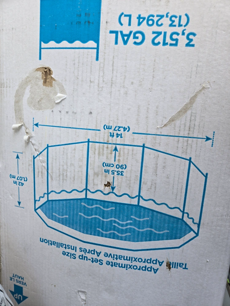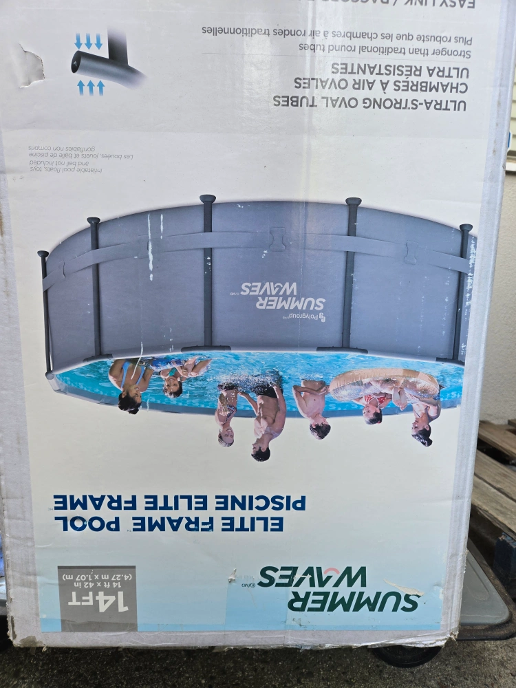 Brand new 14 foot pool. Purchased from Walmart last year. The bottom was a bit opened but taped back by the staff. I opened the box that was partially opened to find it contains the contents of the ladder which is all there. The other boxes are still sealed never opened. Retails for 499.99 plus tax at Walmart. Price is firm Pick up near 22nd skytain new west