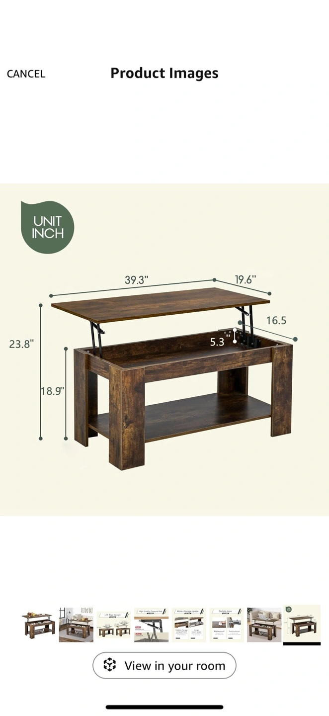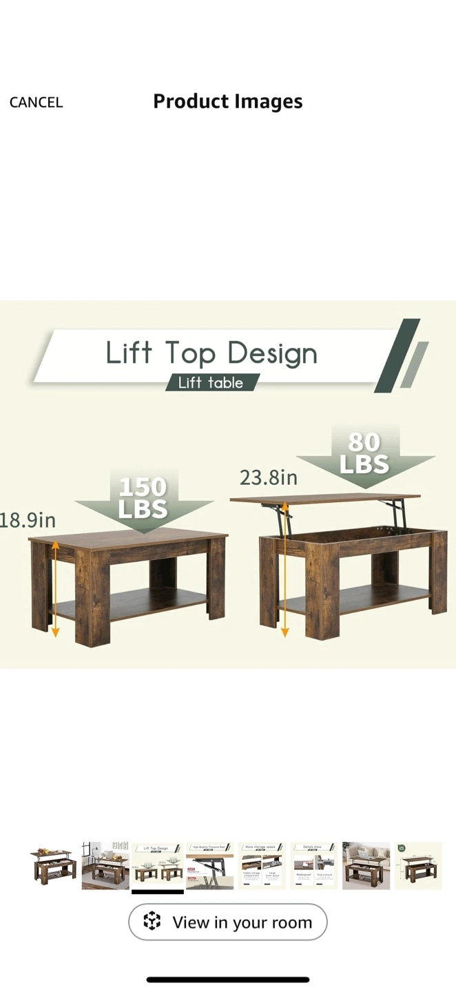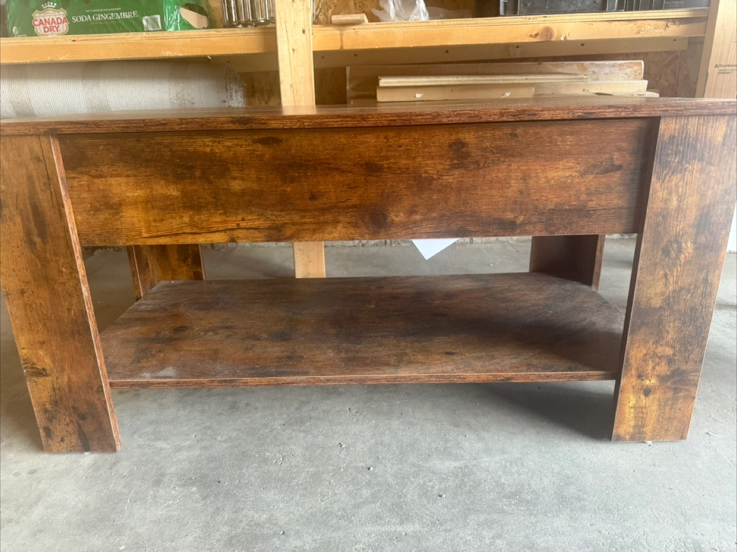 1. A coffee table with a lift top design. The table features a lower shelf for storage and sturdy legs. This table would be perfect for a relaxed evening at home with a book.