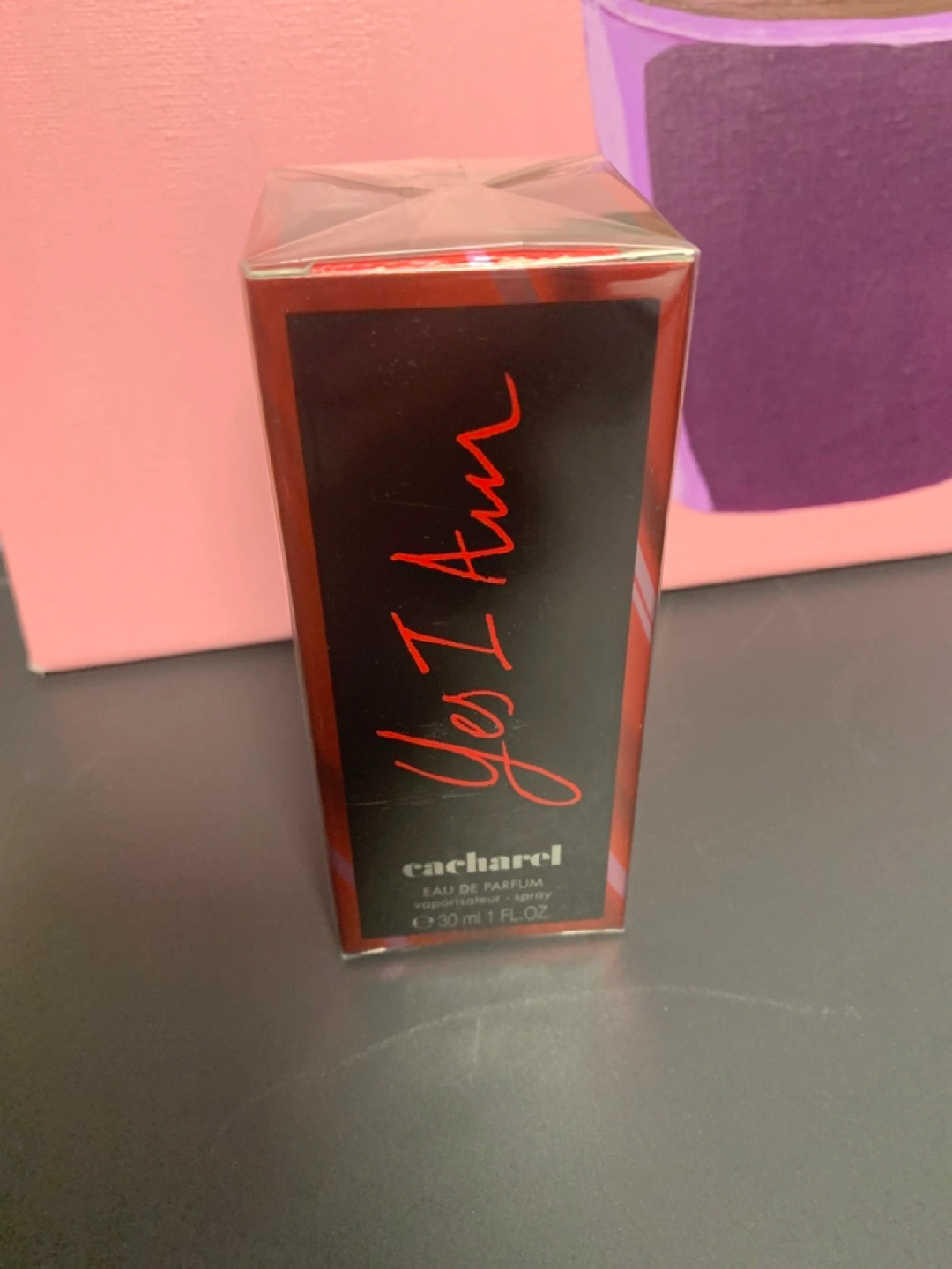 30ml A dark red box. Printed in red is the phrase "Yes I Am". There is also the Cacharel logo. You might want to consider this product to add a little extra something to your daily routine.