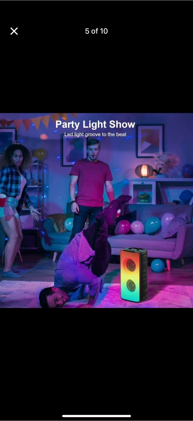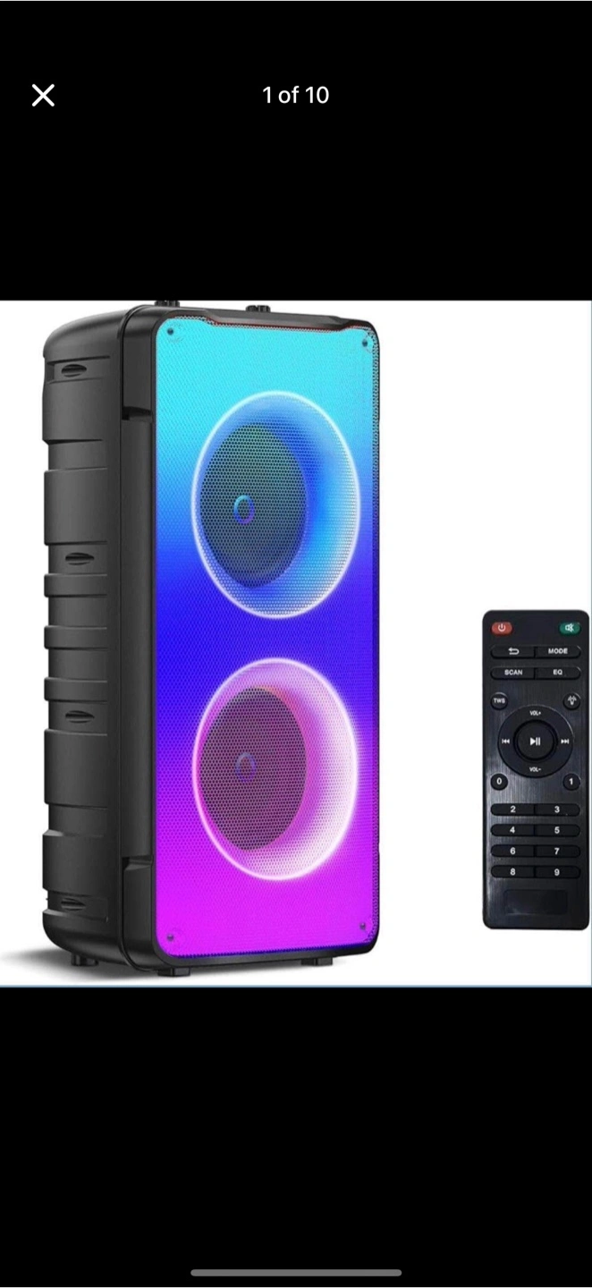 Wireless Stereo Speaker with Rich Bass, Bluetooth 5.0, FM Radio, Colorful Lights, TWS Pairing, 10000mAh Battery, Outdoor...