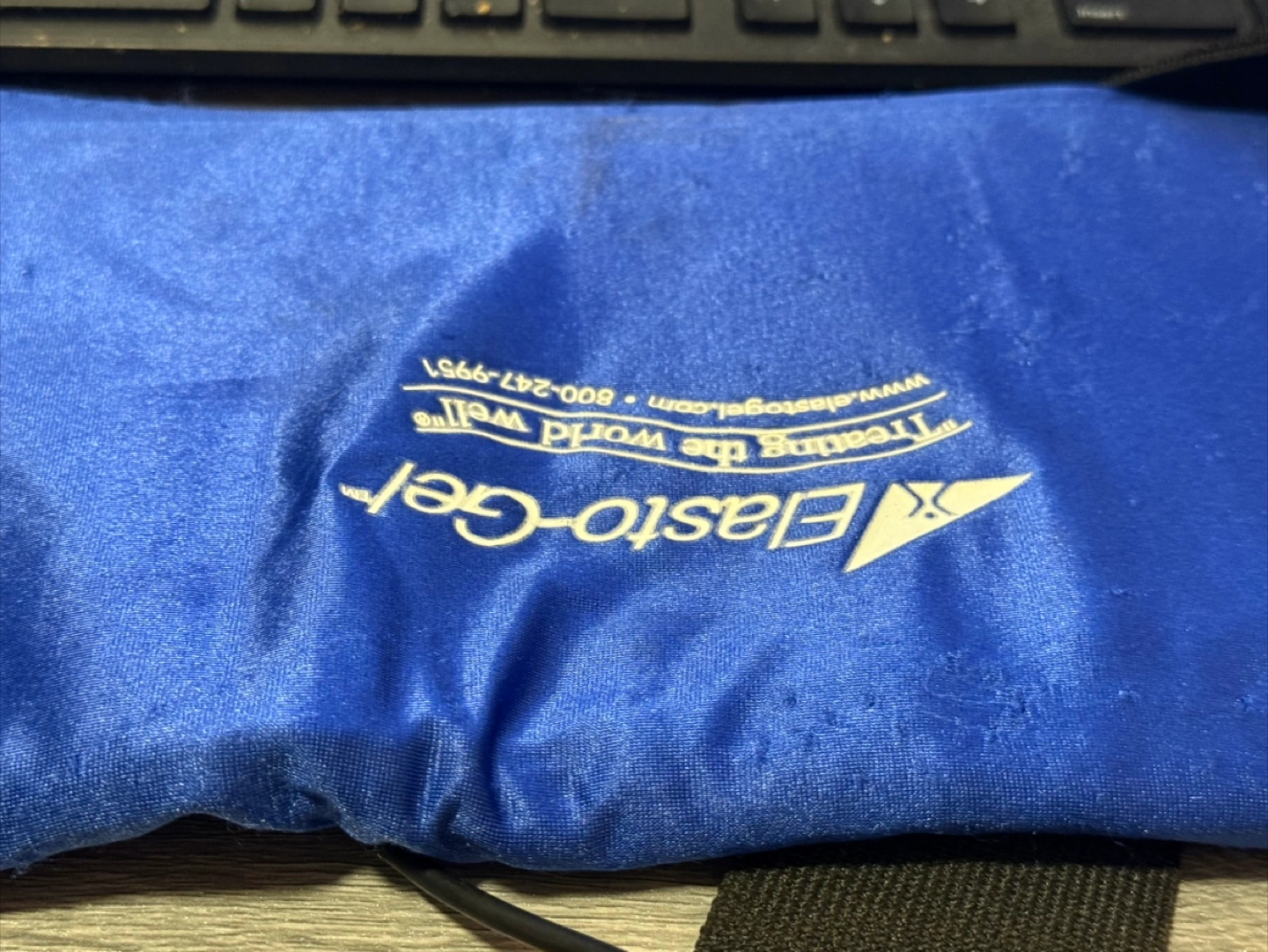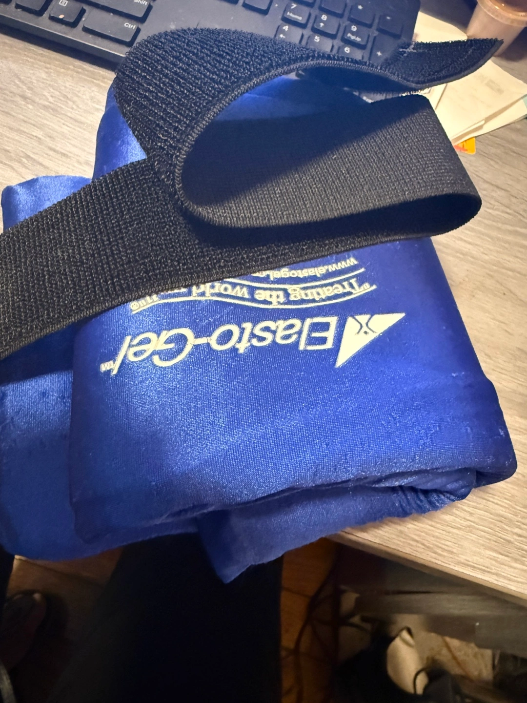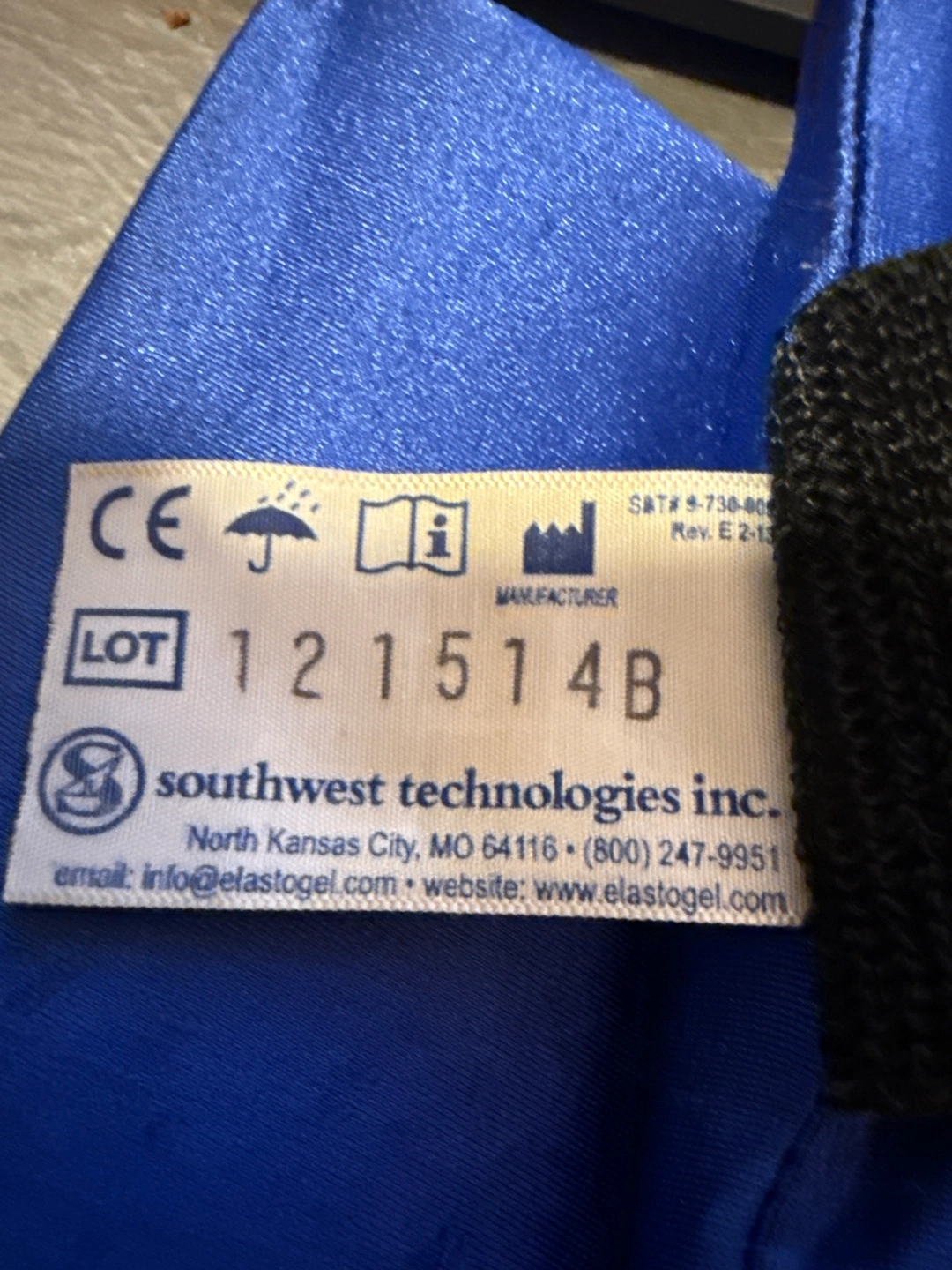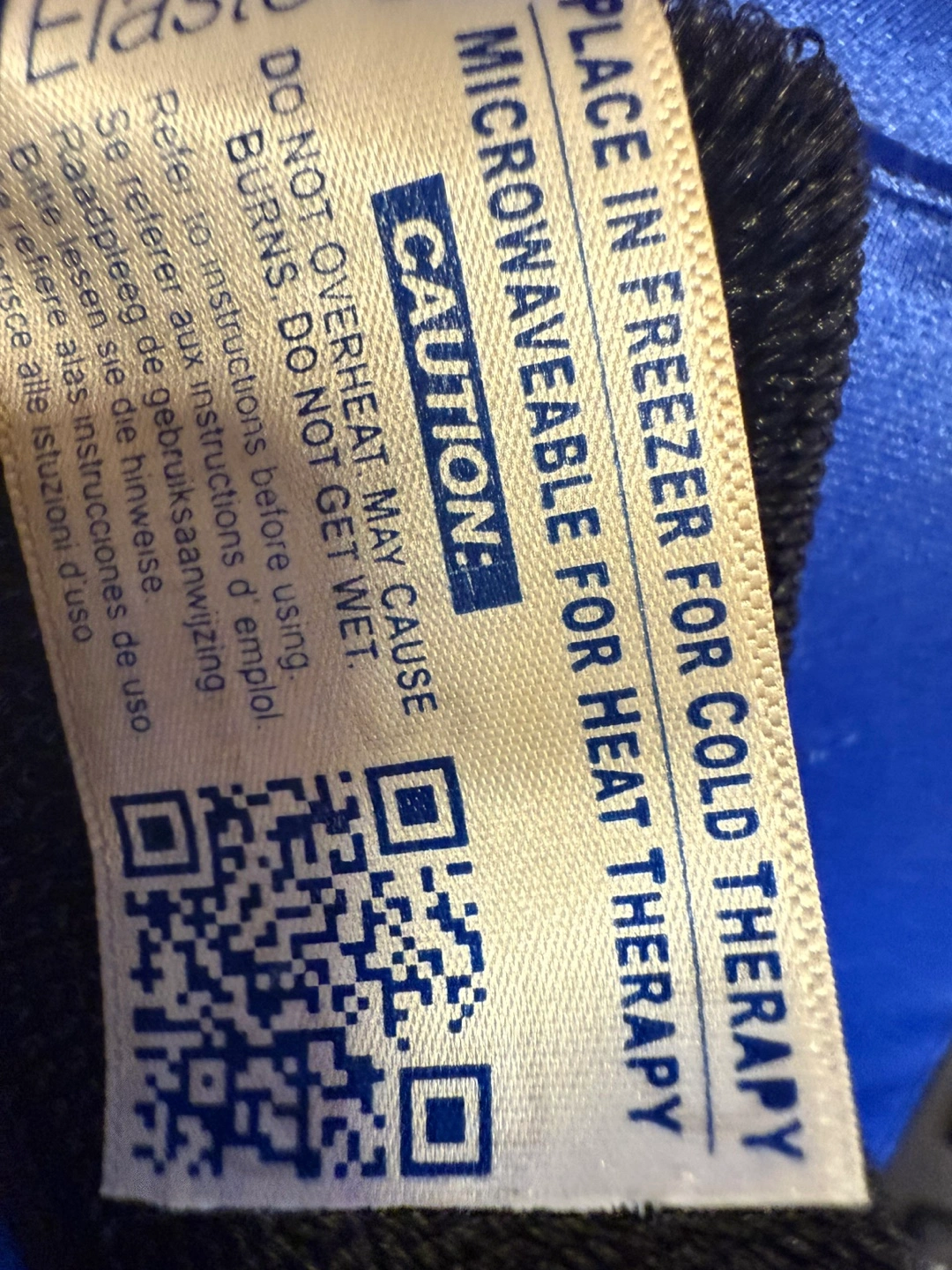 This wrap features a blue fabric cover and a black velcro strap. It is reusable and can be used for both hot and cold therapy to soothe your body.