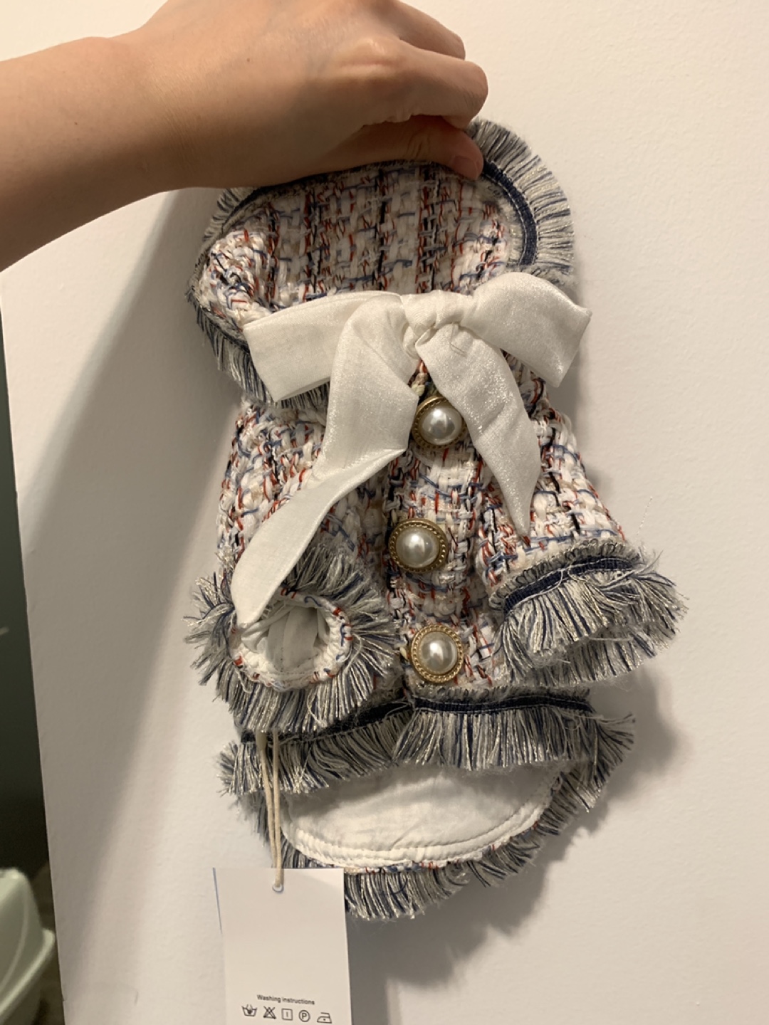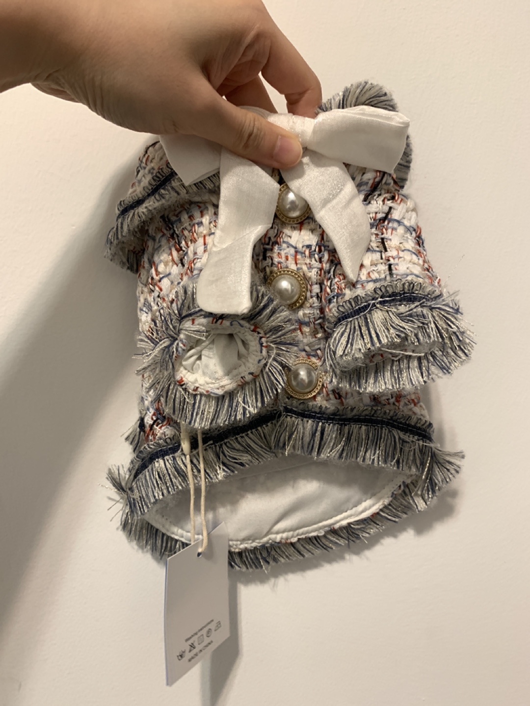 Buy & SellBrand new pet jacket with bow and fringeBrand new pet jacket with bow and fringe$15A stylish dog jacket. Features a bow, gold buttons, and fringe. Made with a tweed-like material. A great way to keep your pup looking fashionable.ConditionNewWHERE TO MEETForest manorView MapSELLERverifiedGooseParkway Forest38337 reviews0 chats·0 favorites·10 viewsSEND CHAT TO SELLERHi Goose! I’m interested in your listing.Hi Goose! I’m interested in your listing.Get the Karrot app to chatSign In to chat