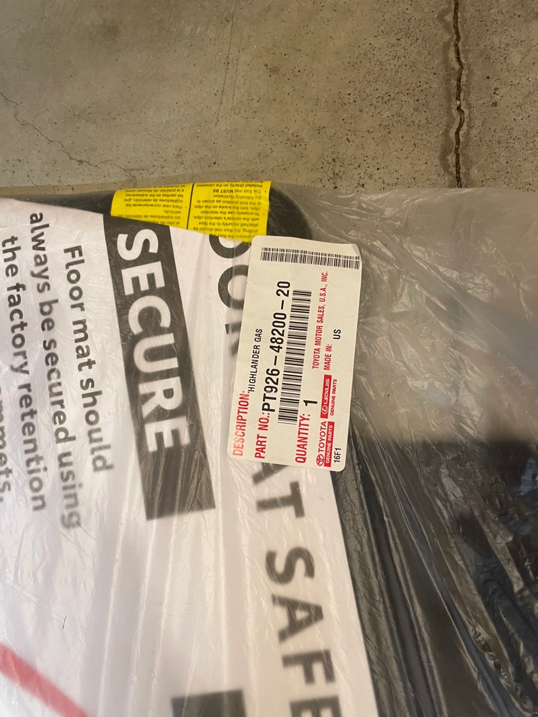 Sealed in a bag. a genuine Toyota Highlander carpet floor mat. Perfect for keeping your car's interior clean, the feeling of a new car will always be with you.
