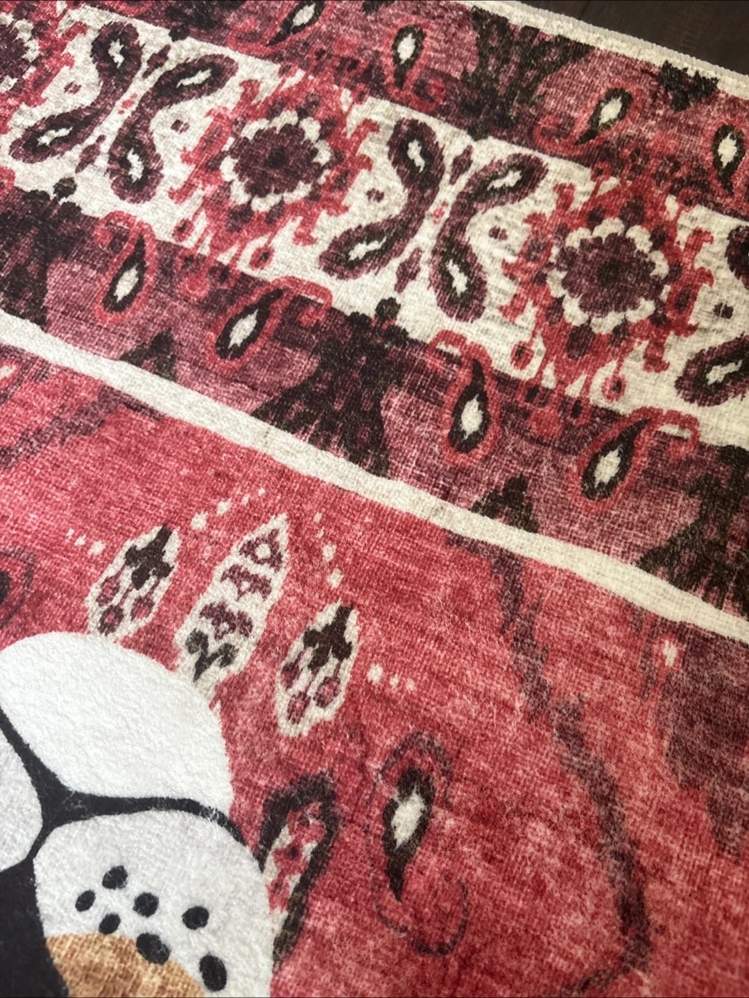 Area rug, with an all-over pattern. The rug features a large leopard print on a patterned background. It will be a delightful addition to your space after a long day. And Washable so makes life easier !!