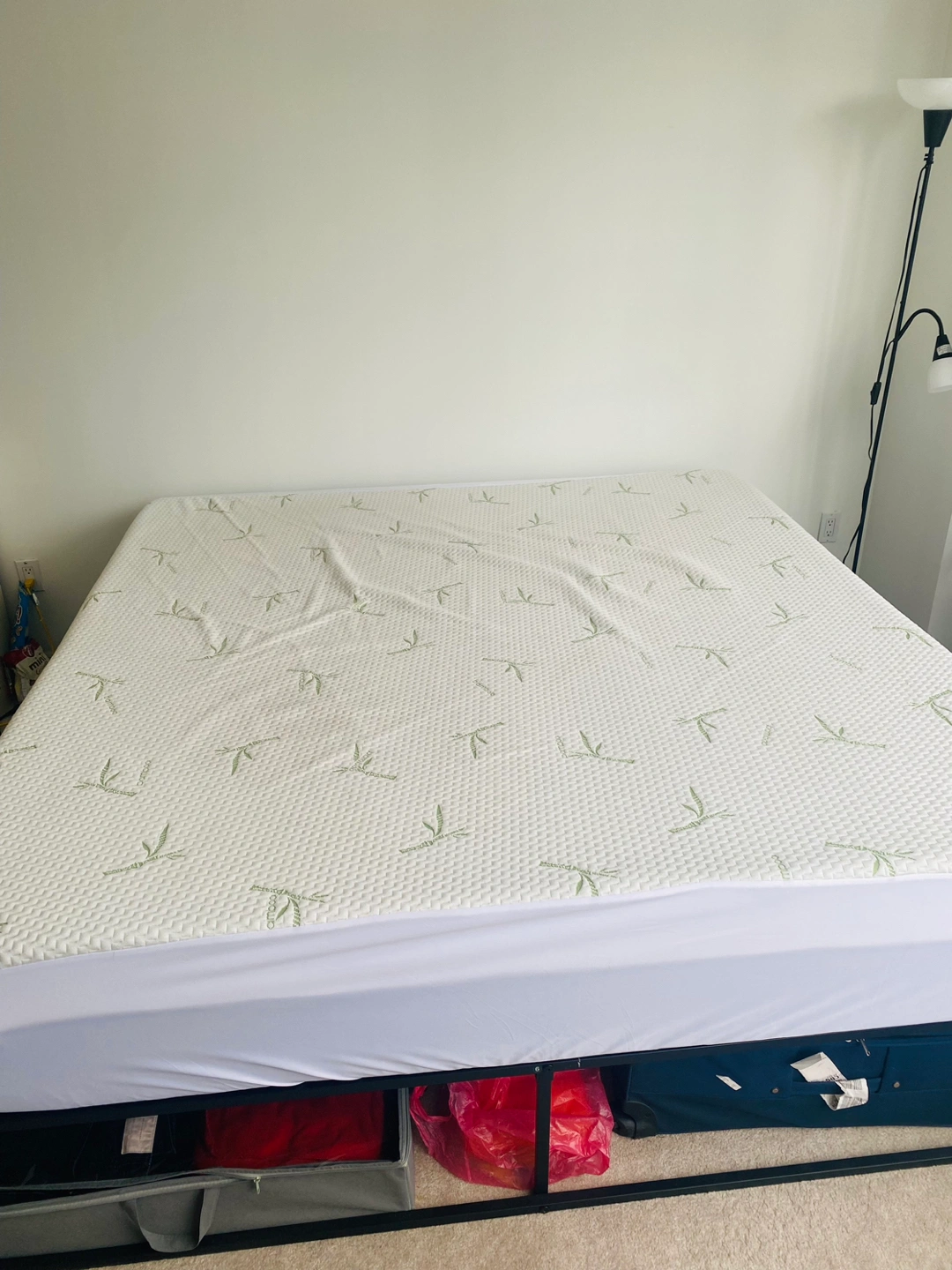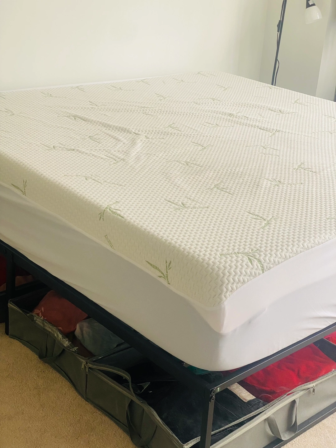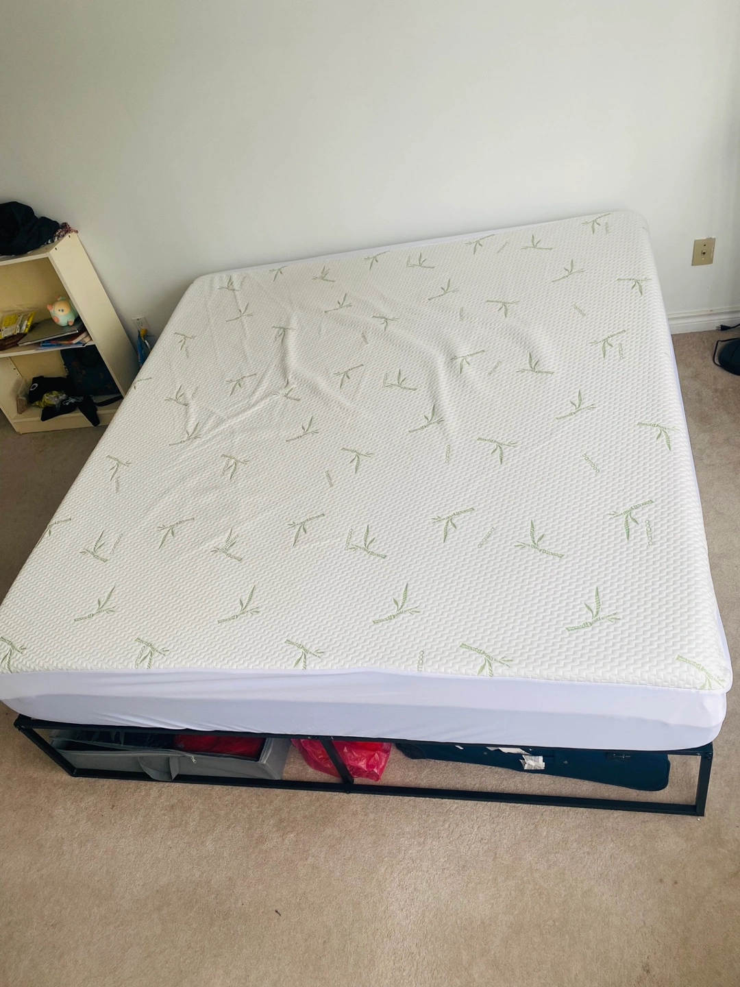 The mattress is a very comfy Molblly 12 inch King Size memory foam mattress.