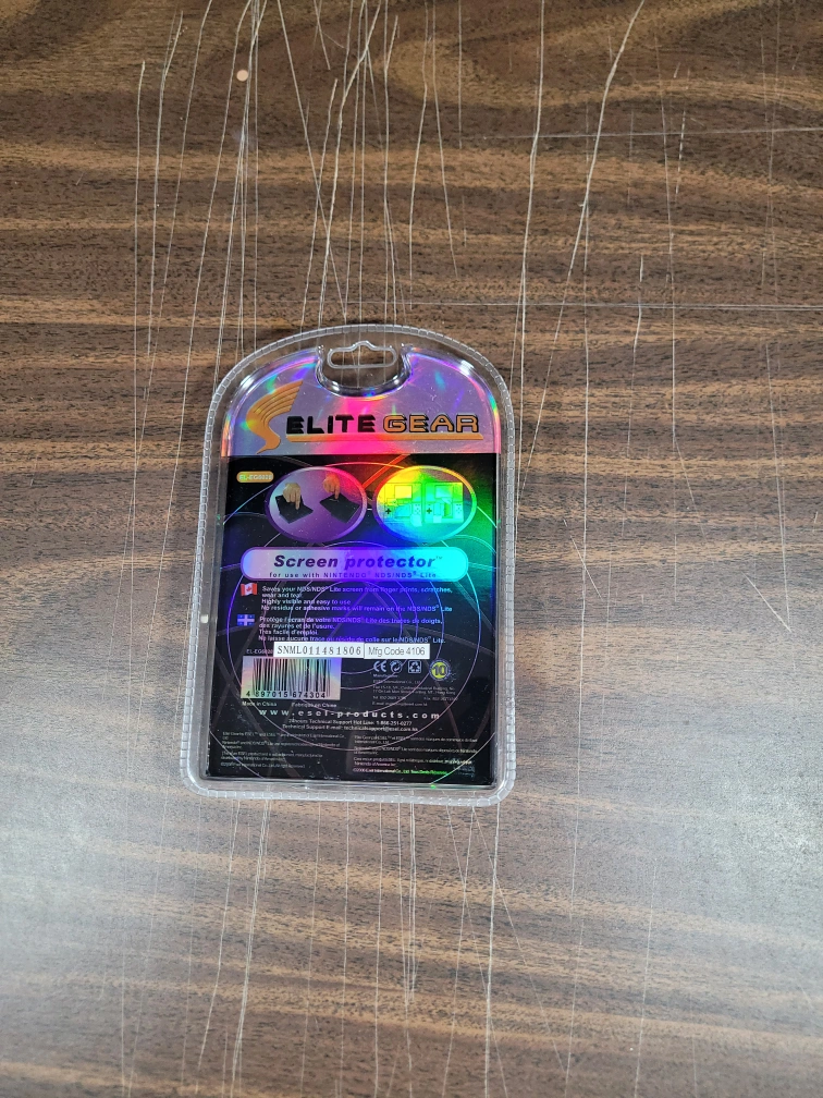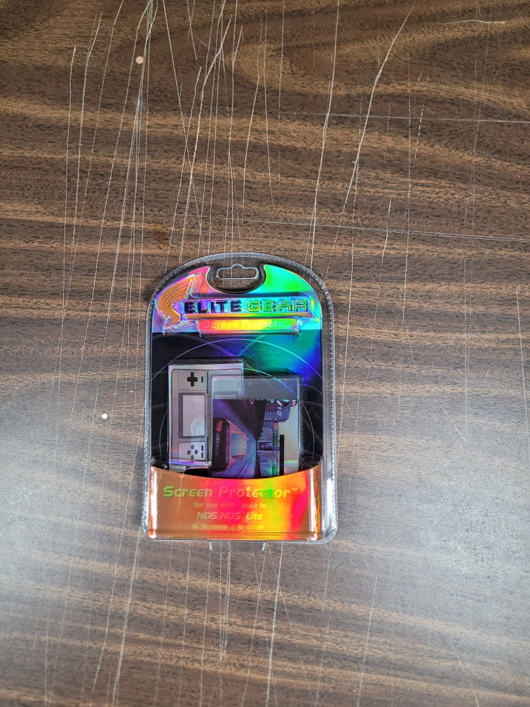 A screen protector designed for the NDS Lite. The protector is still sealed in its packaging. You can relax knowing your device is protected by this screen protector.
