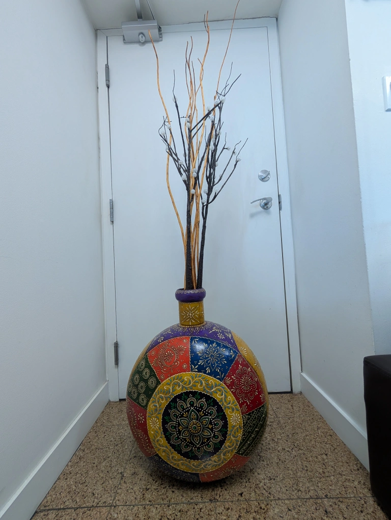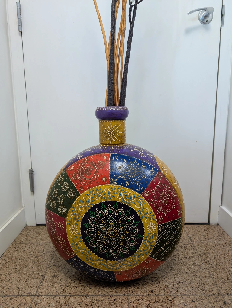 60A beautifully hand painted vase. Featuring various colours and intricate designs. Perfect for any room of the house and would look wonderful as a decorative centrepiece.