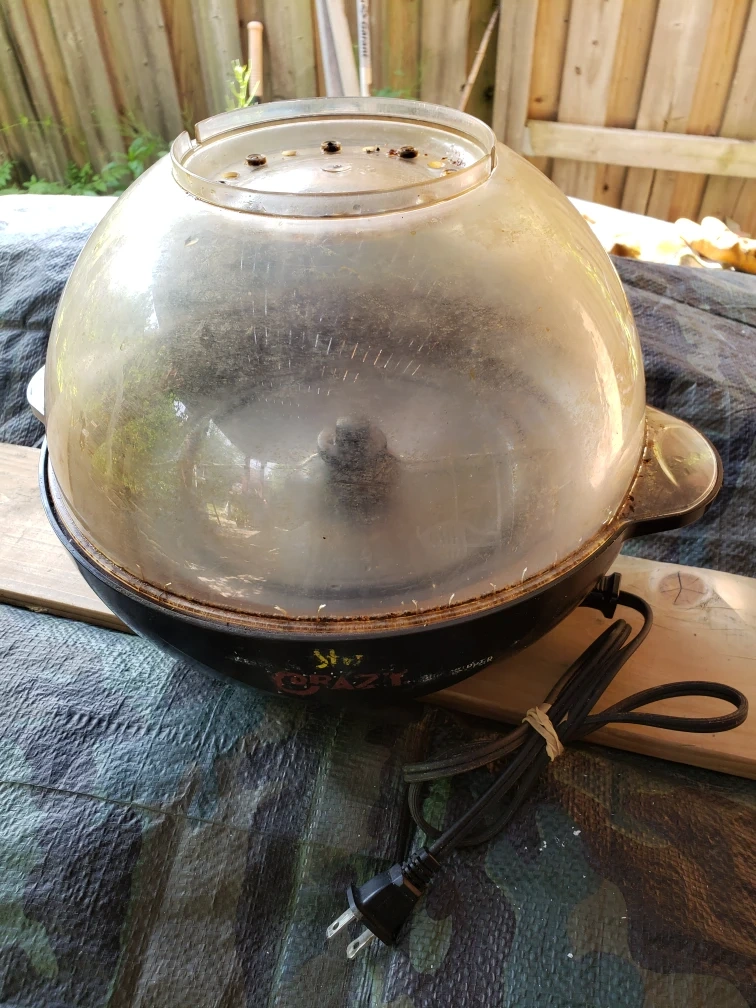 170Round-shaped, electric popper. Features a clear dome top. Black base with a handle. Comes with a power cord. Imagine cozy movie nights with freshly made snacks. Makes kettle corn style popcorn.