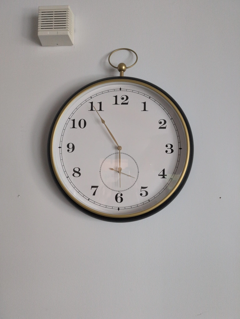 60A wonderful wall clock. Circular shape with roman numerals and gold-tone accents. A great item to put in your living room for an elegant touch and to always stay on time.