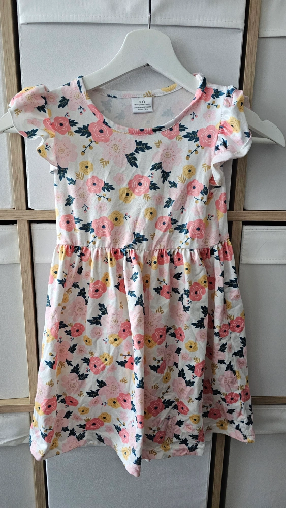 These charming dresses have lovely floral prints. Features a scoop neckline and ruffled sleeves. They would be wonderful for your little girl to wear on a warm day.