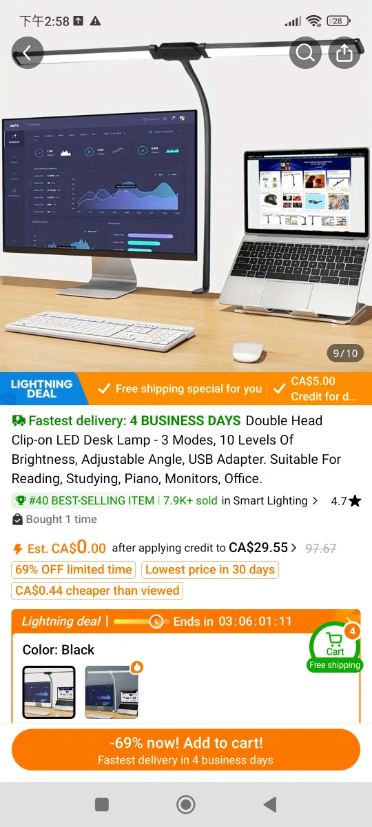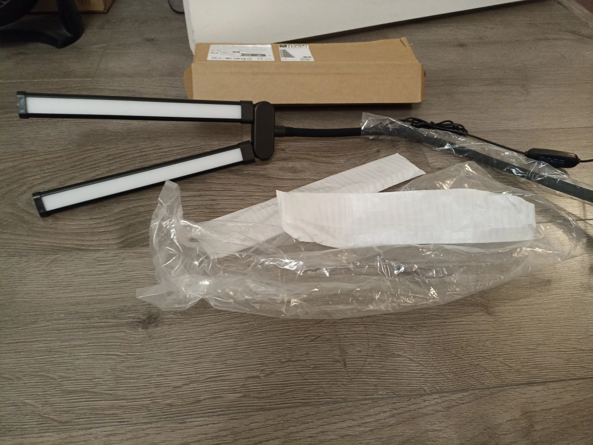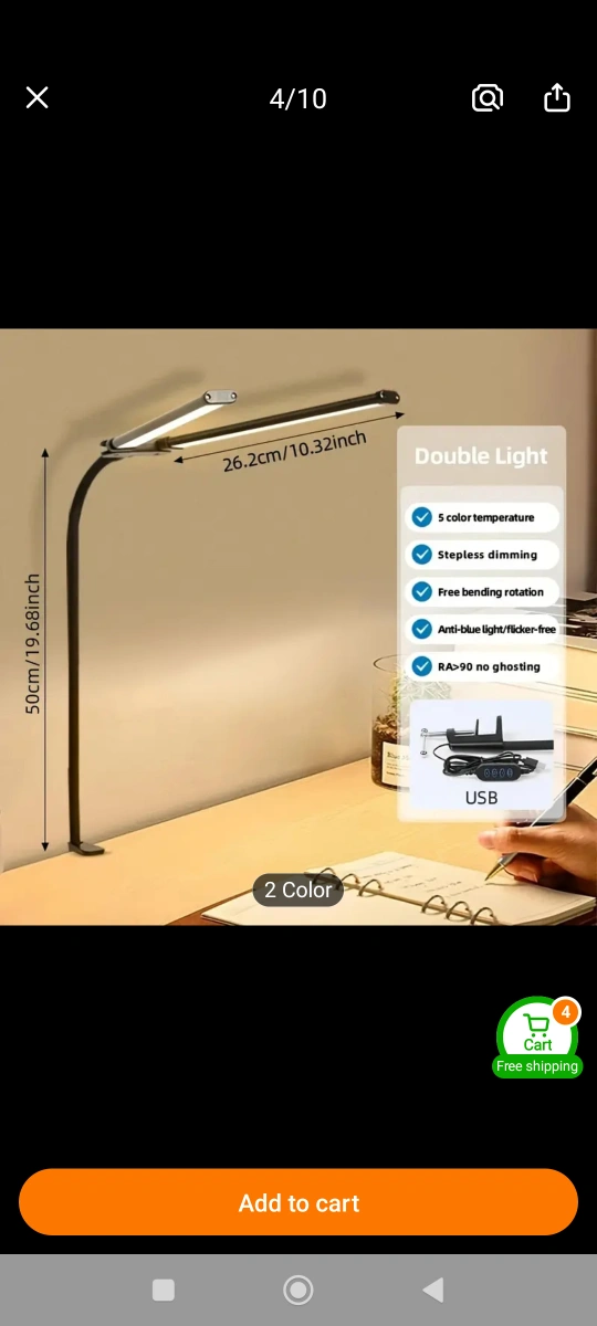 Adjustable desk lamp with a double head. Features adjustable brightness and a USB adapter. This lamp is perfect for creating a cozy workspace.