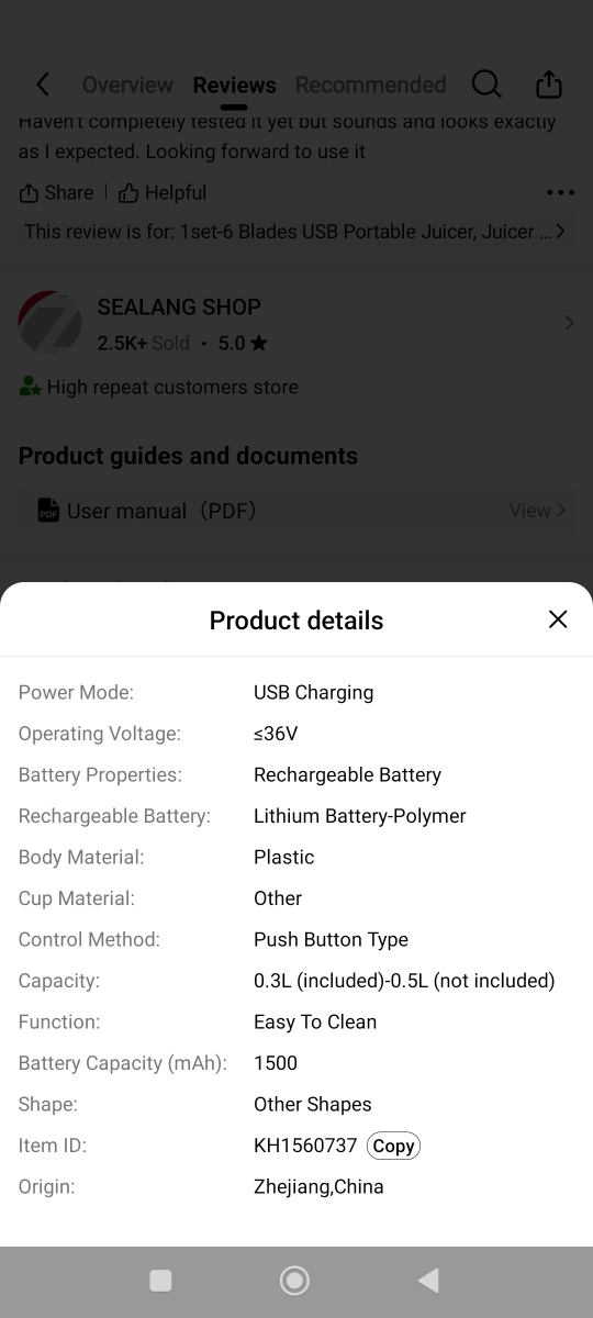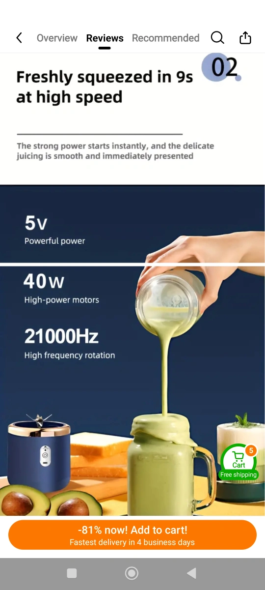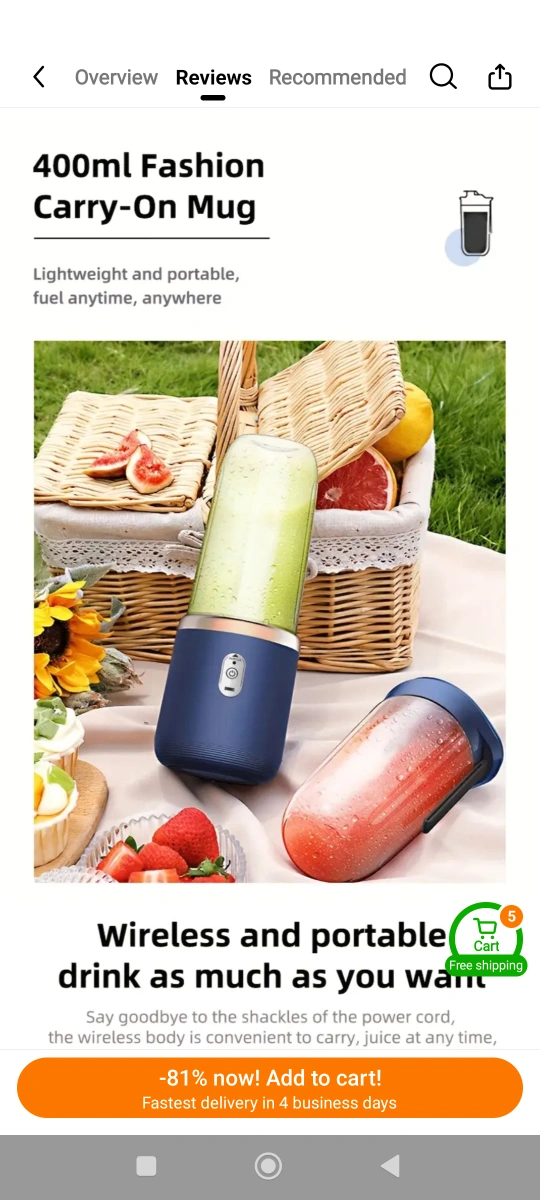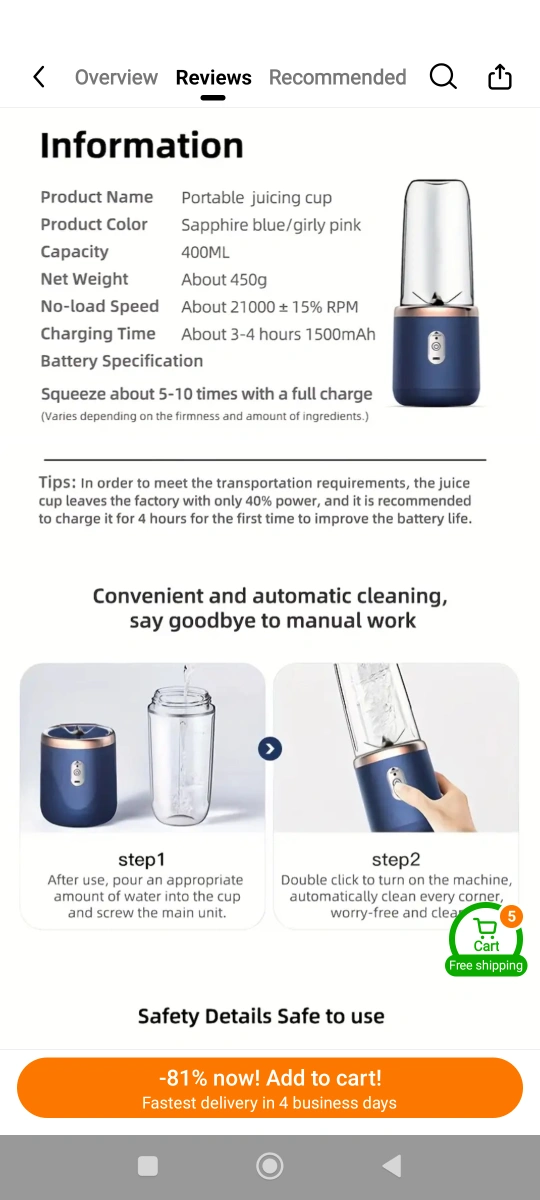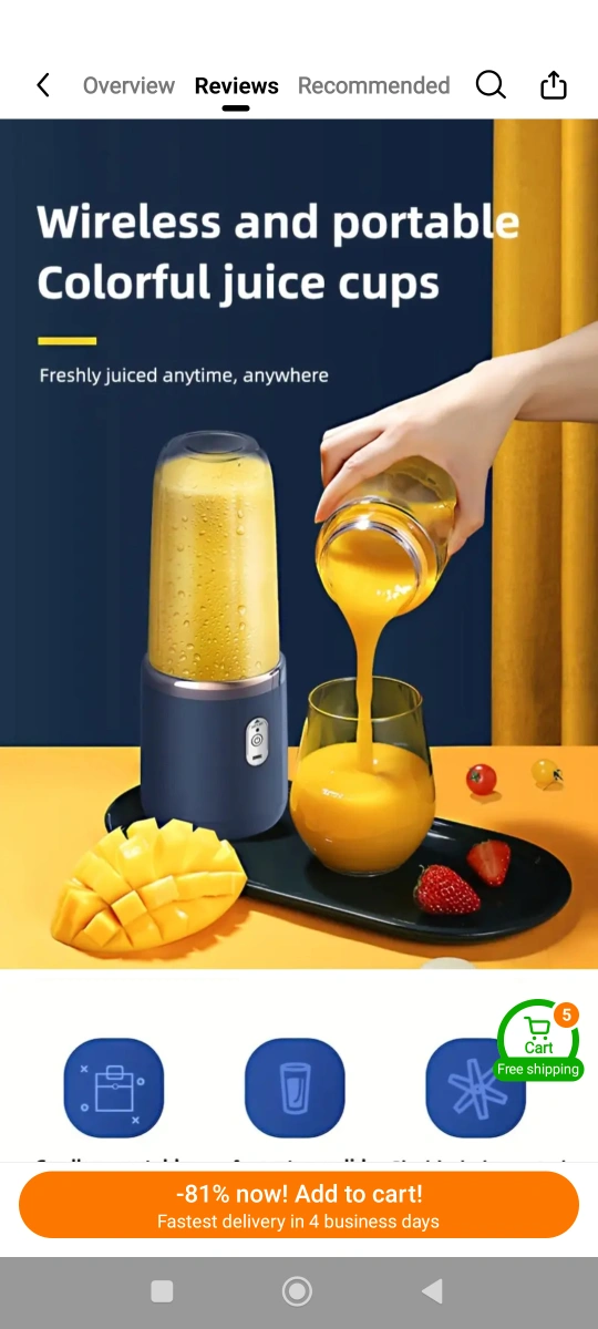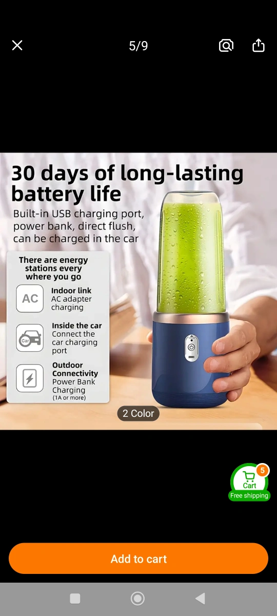 A portable blender and juicer set. Includes two cups. Suitable for making fruit smoothies. I hope this item brings you joy, knowing you can make a drink whenever you want.