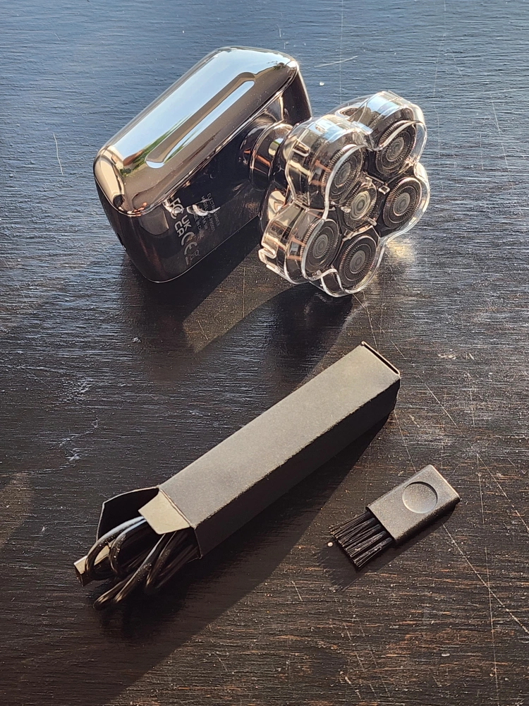 It works very well, nice short cut, and it features a main shaver body, a 6-blade head, a USB-C cable, and a cleaning brush.