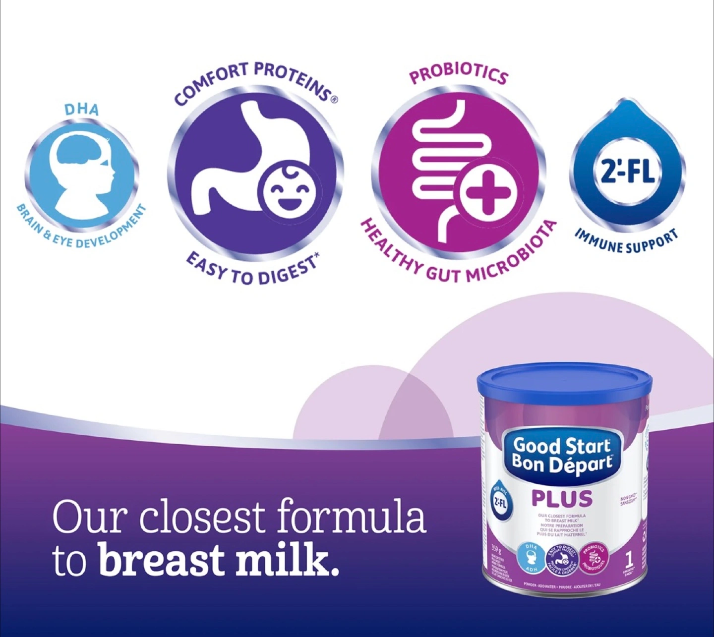 Brand New selling for $5 dollars 🙂. This is the largest size can of 1.02kg. Good Start Plus is the closest formula to breast milk, with the unique combination of Comfort Proteins™, DHA, Probiotic B. lactis, and 2’-FL.