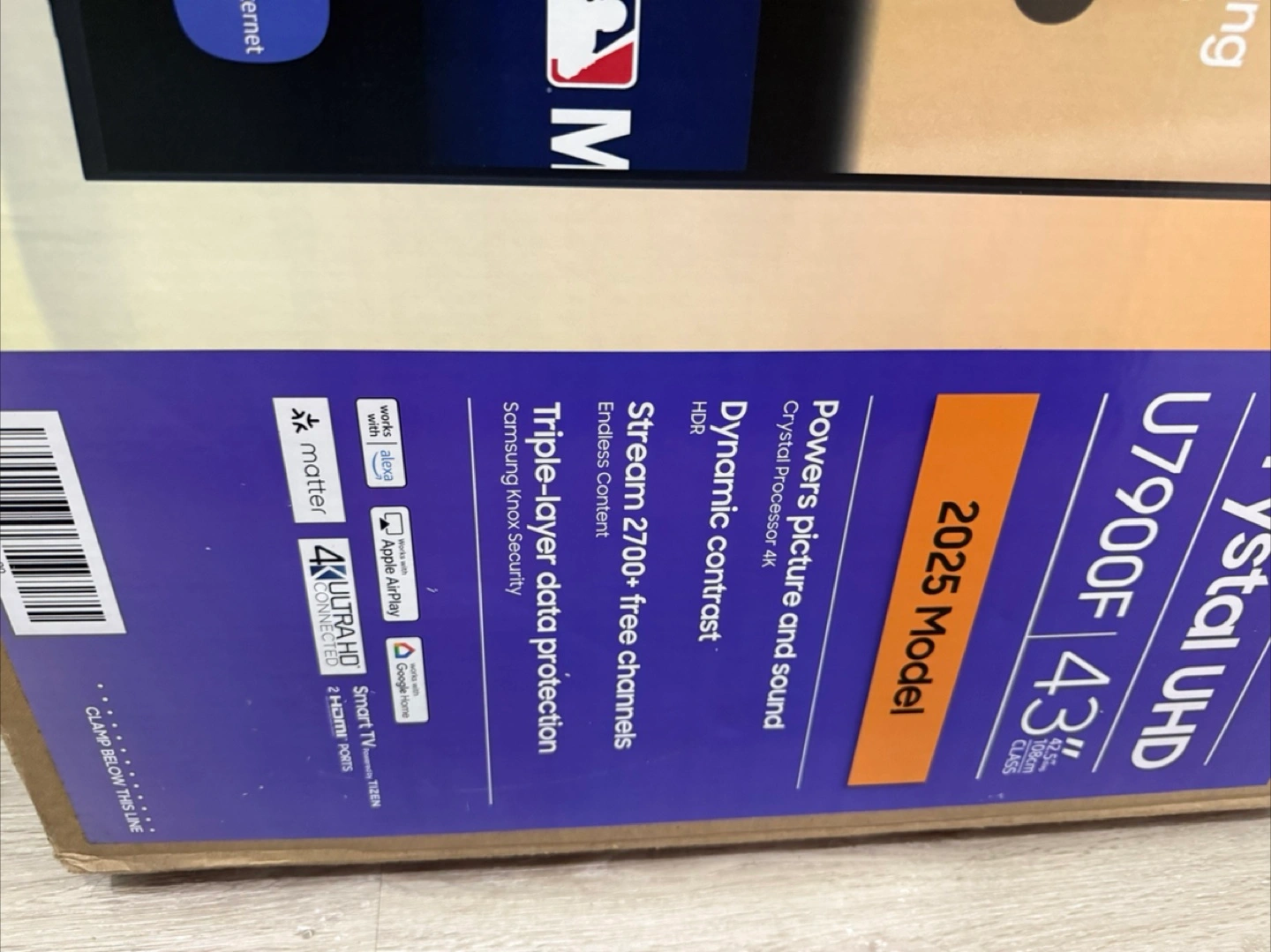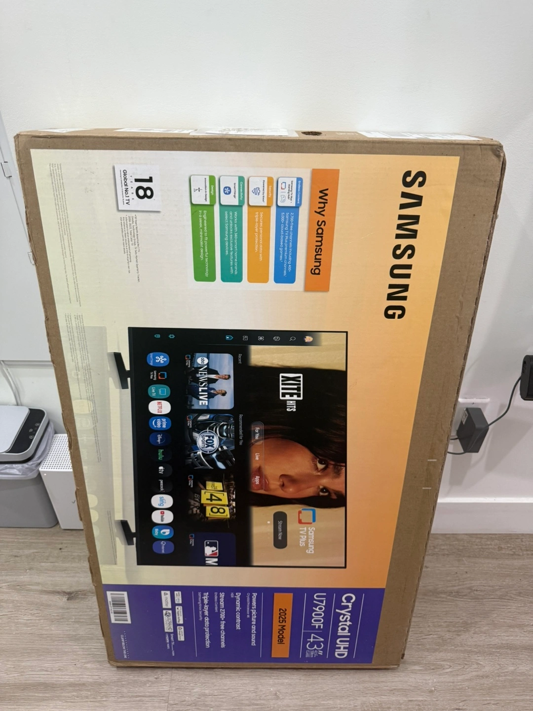 A great way to settle in for a movie night, after a long day. The box shows a modern smart television. Features include 43inch HDR and 4K Ultra HD. It mentions a crystal processor. Brand new and never opened you will be the first! And it has a 2 year Samsung warranty that covers anything. It retails for $350 but I’m selling it for $220 43" Class Crystal UHD U7900F 4K Smart TV (2025).