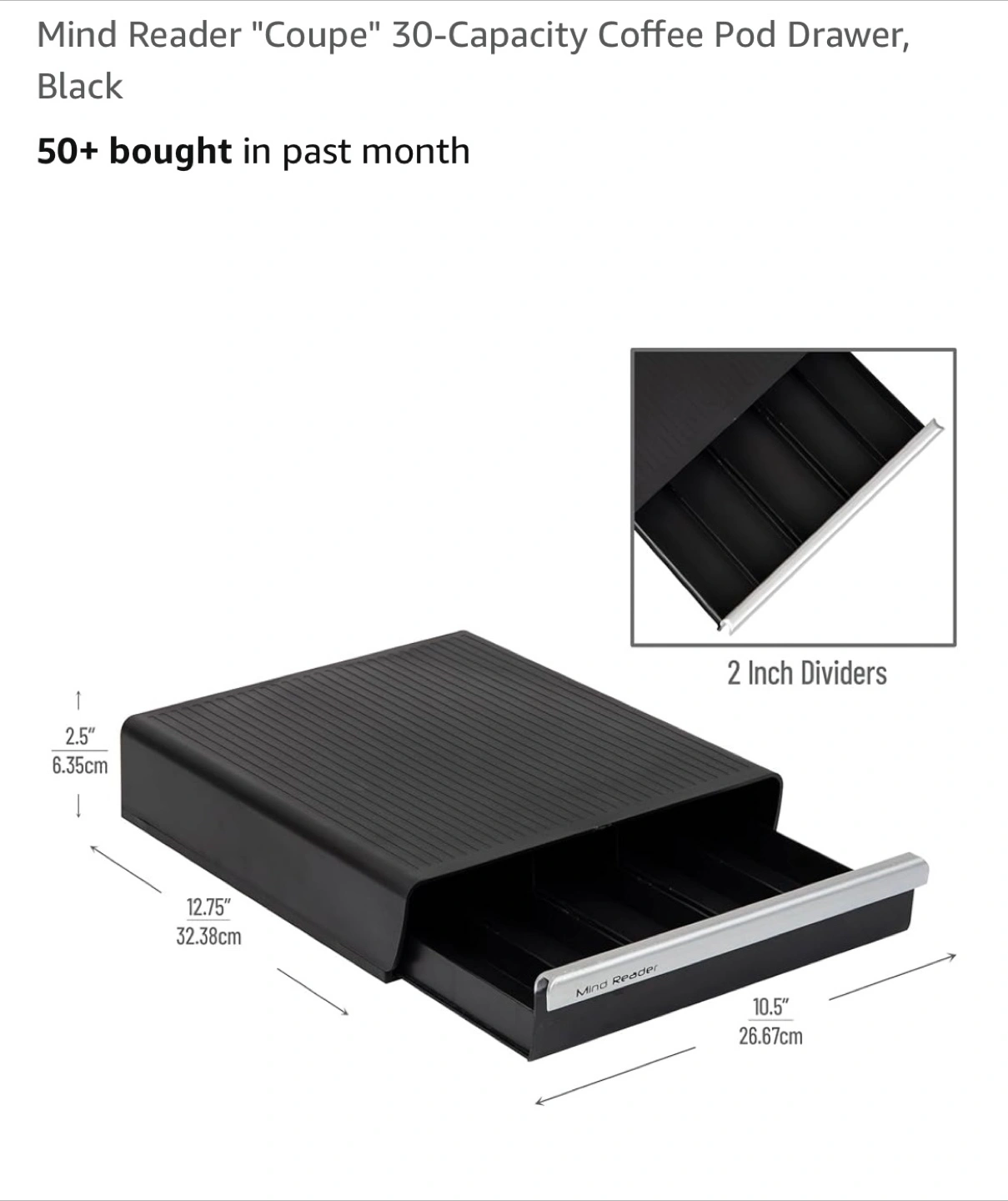 Coffee pod storage drawer. Black design with a drawer for easy access. Keep your pods organized in a convenient spot. A great way to create a calm morning routine.