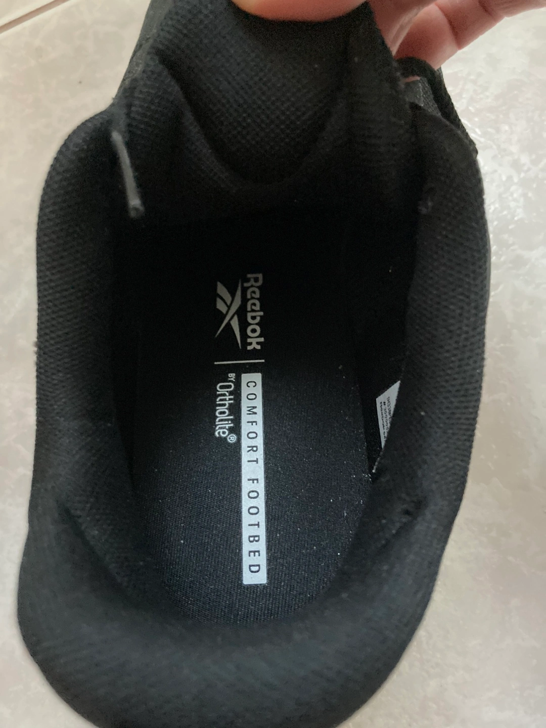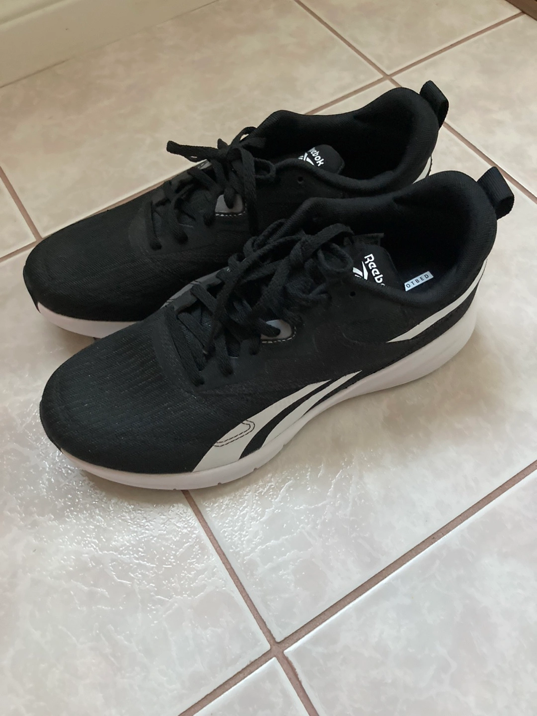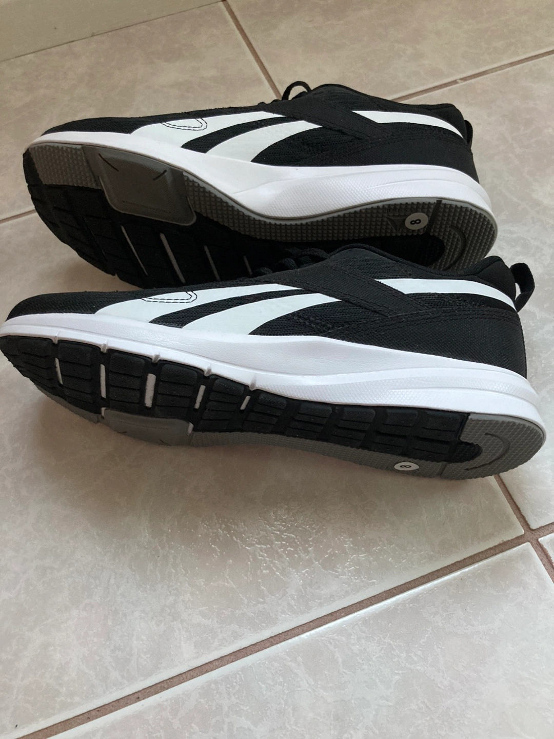 A pair of brand new, never worn athletic shoes. Black with white accents. 8.5 men’s. Ortholite